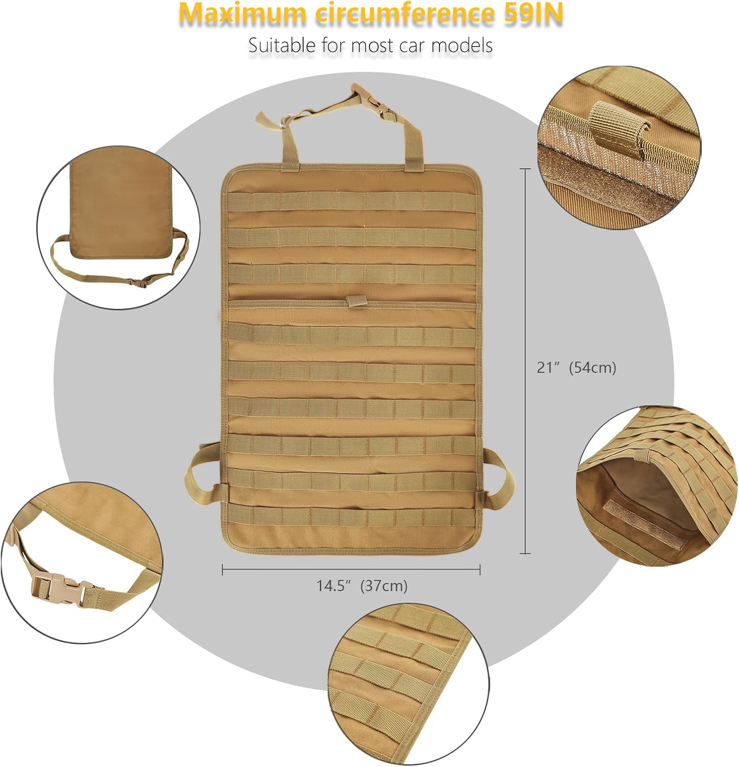 - ๐ Multifunctional Storage - Design with 5 Molle bags on the back to help you store tactical gear & personal items and save space. Difference sizes of Molle bags help you classify your items so easily.you can set the Tactical Seat โBack Organizer according to your own habits and need.