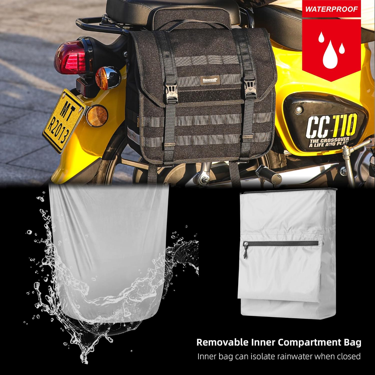Rhinowalk Motorcycle Saddlebags, Waterproof Saddlebags, Quick Release 13L Single Side Hanging Bag Motorcycle Accessories
