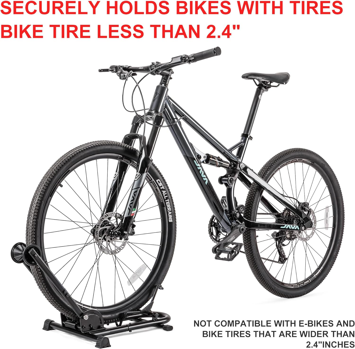 - 【COMPATIBILITY】: The Bike Floor Stand will fit almost all bikes range from Kids Bikes, 26" to 29" Mountain Bikes, 650c -700c Road Bikes,cyclocross bikes, hybrid bikes and kids' bike, EXCEPT those bikes with the tires more than 2.4" in width.It is not recommended for heavy e-bikes though.