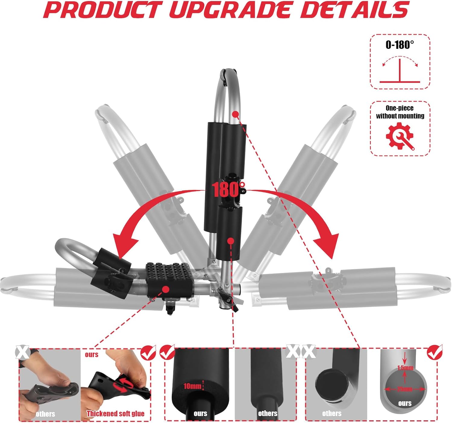 - 【Upgrade Thicken Design】The FORWODE frame is made of aero-grade aluminum using an anodized process. The thickened tube wall (1.5mm) and diameter (25mm) make the roof frame light and strong. The widened design can support two heavy kayaks up to 180lb. Rust-resistant and corrosion-resistant material features you can keep on the car roof for a long time without removing it.