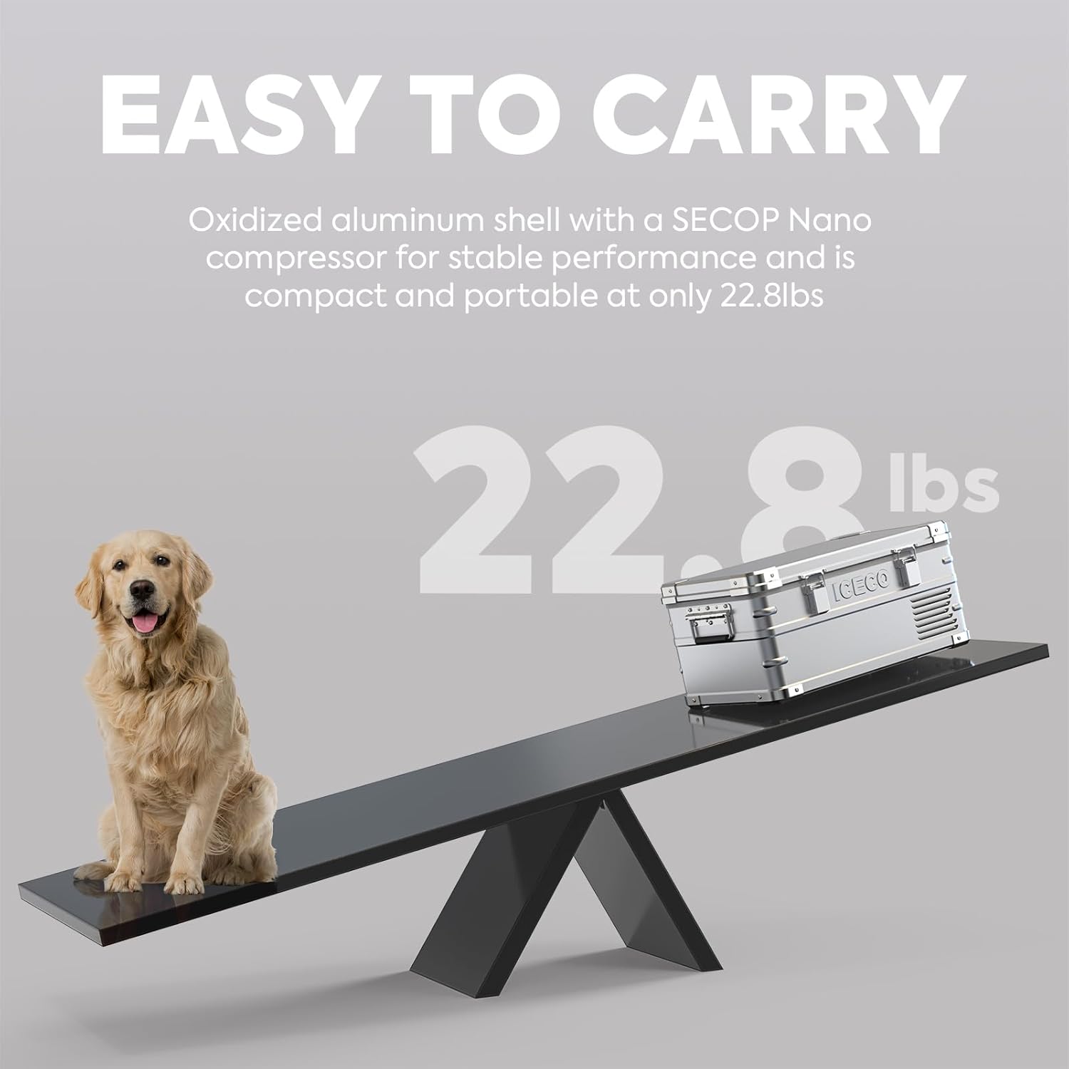 - [SECOP Nano Compressor] This 12v freezer Cooling range from -4°F to 68°F(-20℃~20℃) to meet all your freezing or refrigeration need. MAX mode for fast cooling and ECO mode for energy saving. With the SECOP smallest compressor, it weighs only 22.8 lbs, but is very consistent in performance.