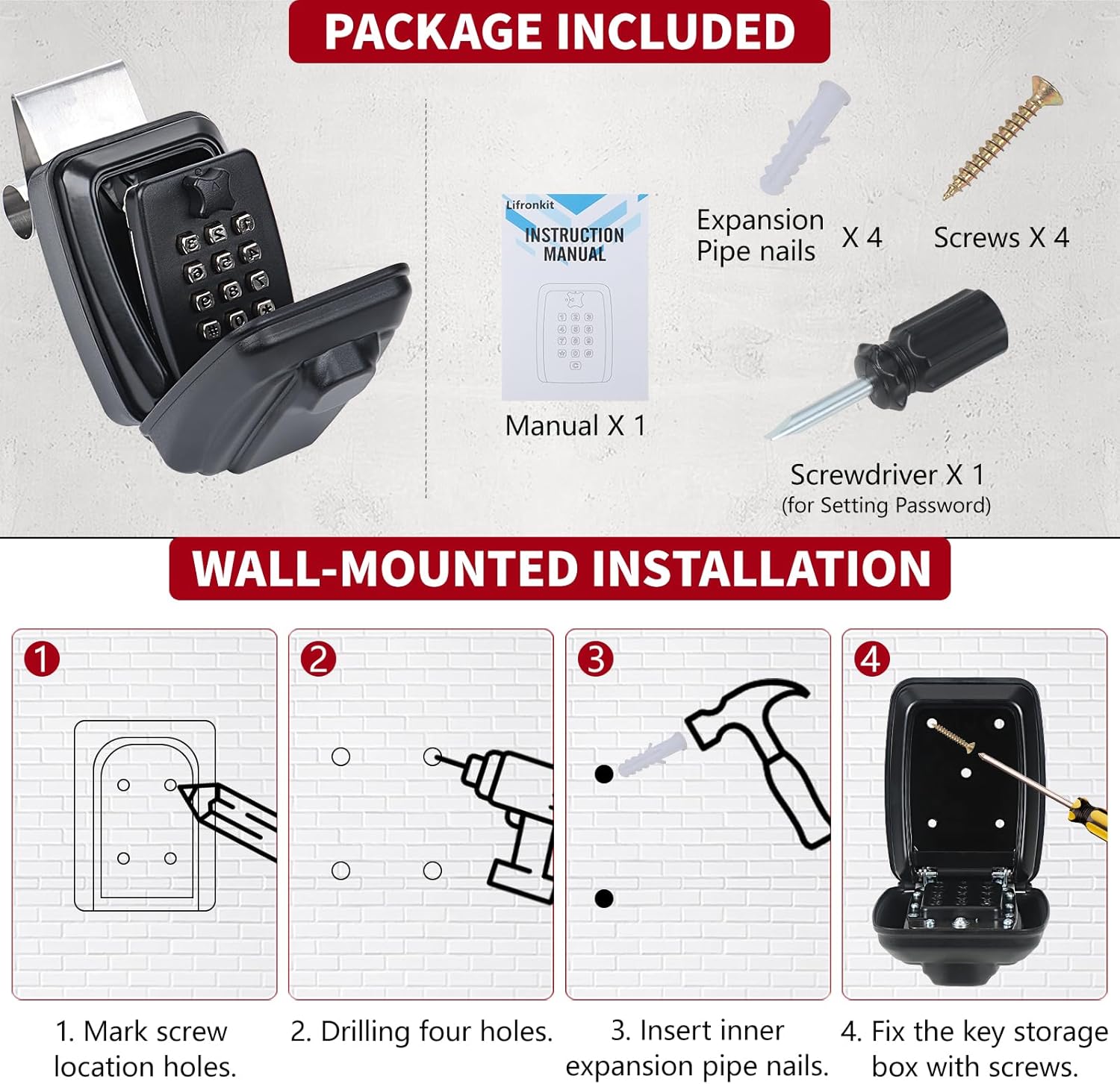 - Easy to Install and Use - Our key lock box comes with a back hook and screw fixing holes, so you can hang it on the car window without scratching it. It can also be fixed on the wall by screws. The included small screwdriver is convenient for you to set the password, and the metal button is more convenient to use. The numbers are clearer, even the elderly can use it easily.