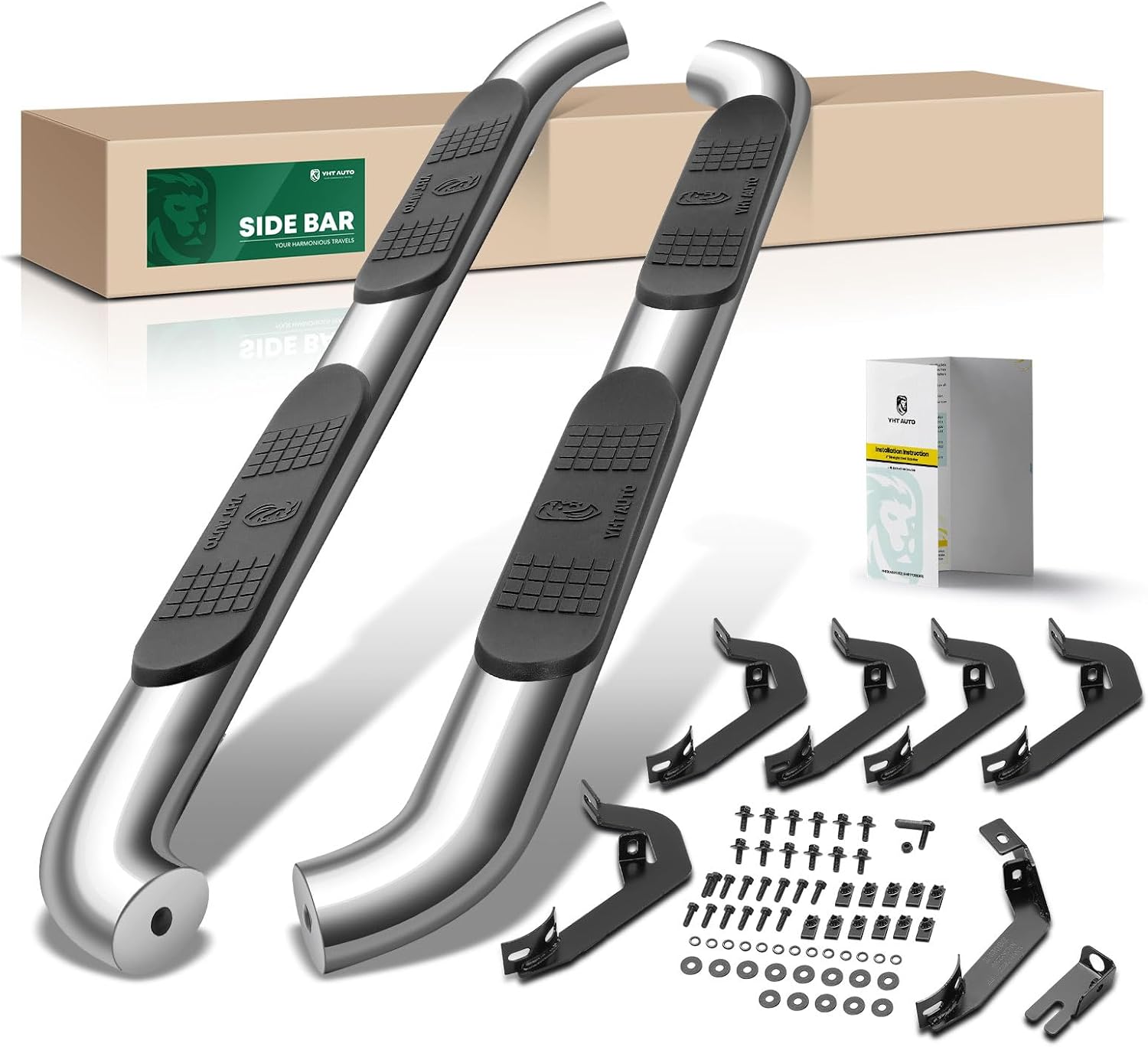 - Rocker Panel Mount: Running boards come with all necessary brackets, bolts, and nuts for installation, eliminating extra drilling if your vehicle has preexisting mounting holes. The packaging features five layers of reinforcement to prevent deformation