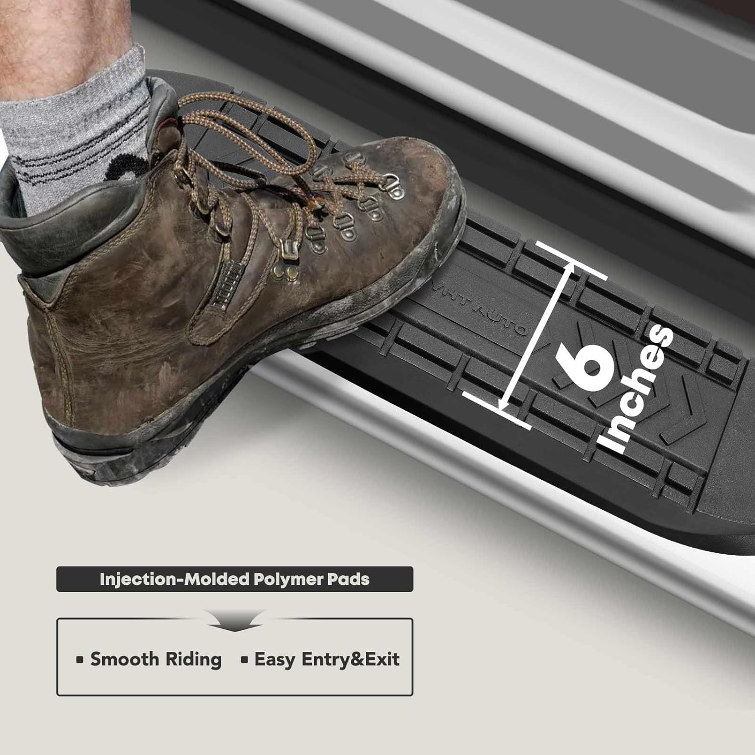 - Rocker Panel Mount: Running boards come with all necessary brackets, bolts, and nuts for installation, eliminating extra drilling if your vehicle has preexisting mounting holes. The packaging features five layers of reinforcement to prevent deformation
