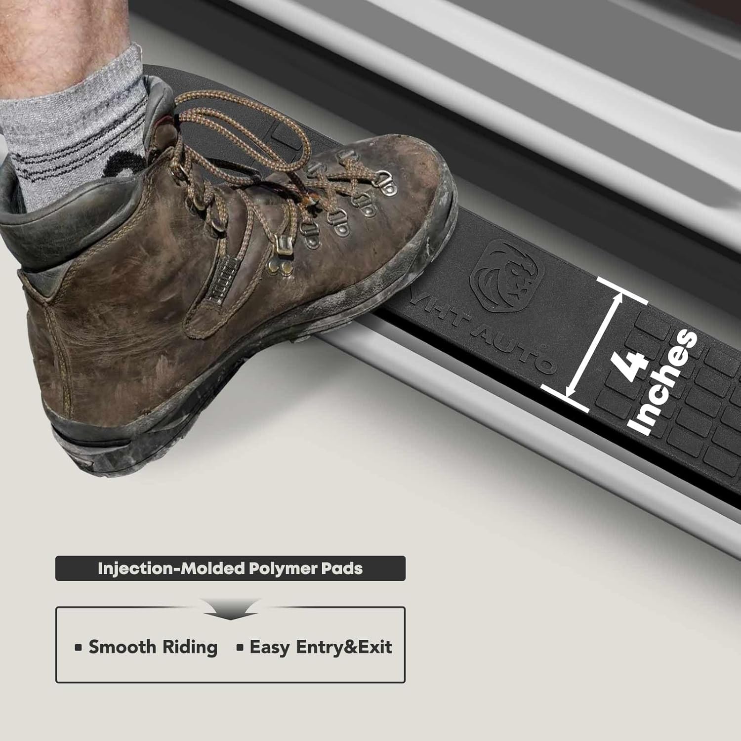 - Non-slip and Anti-corrosive Rubber Pad: The footrest boasts of the step boards are made from specially treated ABS material, the grooves and textures for superior anti-slip qualities. It also exhibits remarkable UV resistance, maintaining its appearance through a rigorous 720-hour xenon aging test