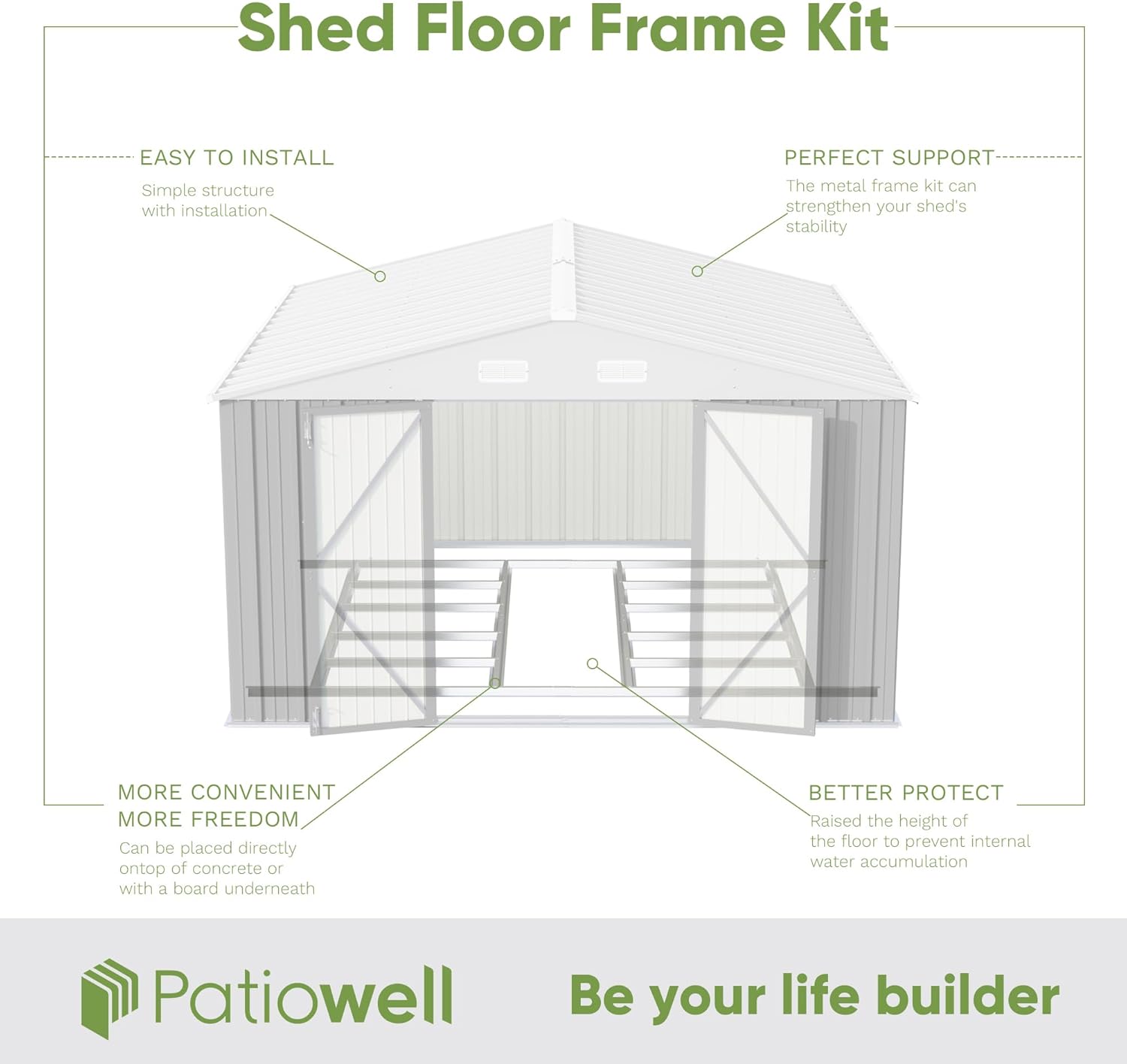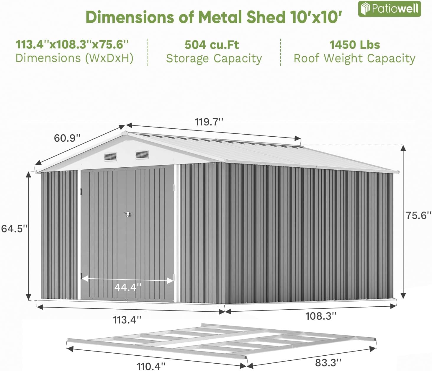 Patiowell 10 x 10 FT Outdoor Storage Shed with Floor Frame, Metal Yard Shed with Design of Lockable Doors, Utility and Tool Storage for Garden, Patio, Backyard, Outside use, Gray