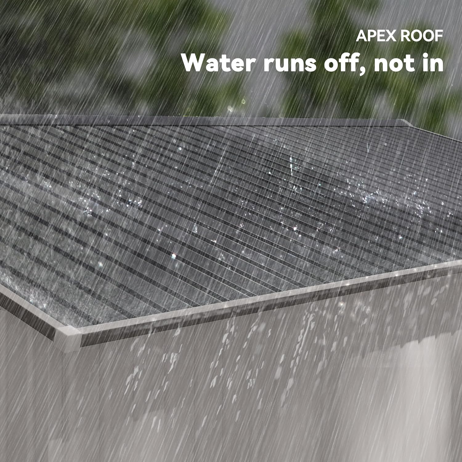 - Spacious Storage Shed: Our outdoor metal shed features plenty of inner storage space so that you can store garden tools, lawn care equipment, and pool supplies. Its large, double sliding doors allow you to roll in bikes or roll out lawnmowers.