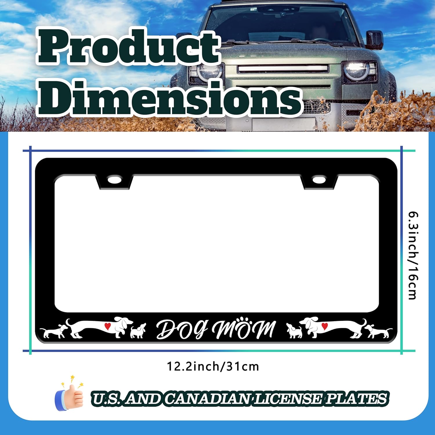 - 6.3 X 12.2 INCHES: Suitable for most standard size U.S. and Canadian license plates, can be applied to front or rear license plates, universal style. Add points to the beauty of your car!