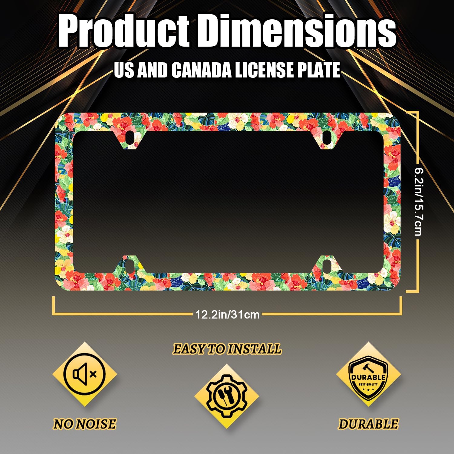 - The size of the license plate frame is: 12.3" x 6.3" , it fits all standard size US vehicle license plates. the stylish design frame fits on your car license plate.