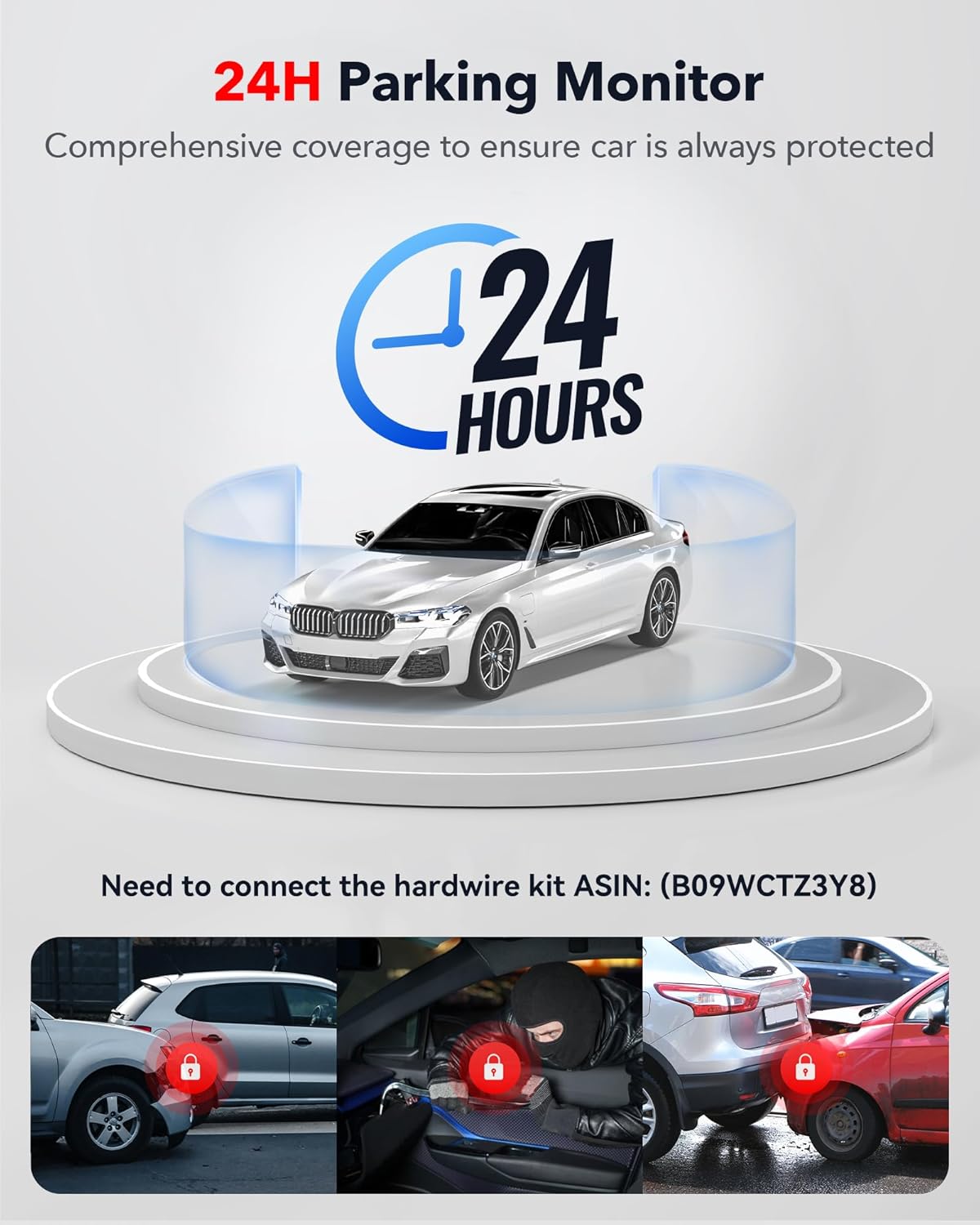 - [Triple Parking Monitor for Max Protection] REDTIGER car security camera features two parking modes to protect your vehicle after using the extra hardwire kit. Time lapse and collision detection modes with G-sensor capture incidents while parked, front, rear, and interior cameras provide comprehensive coverage. Safeguard your vehicle all day.