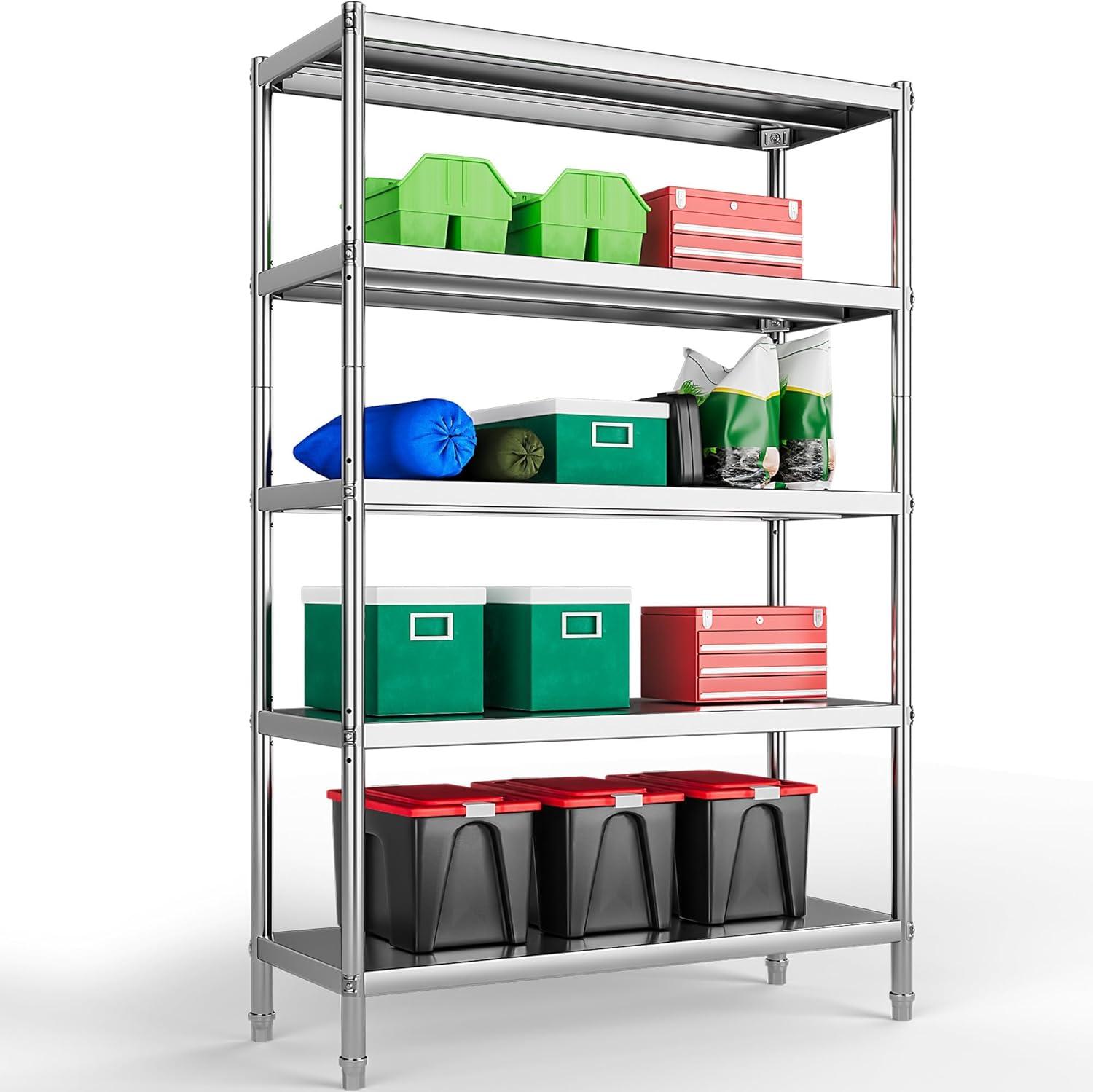 YITAHOME NSF Stainless Steel Shelves, 48"*18"*72" 5 Tier Storage Shelf, Heavy Duty Shelving for Kitchen Garage Office Restaurant Warehouse, 201 Bright Silver