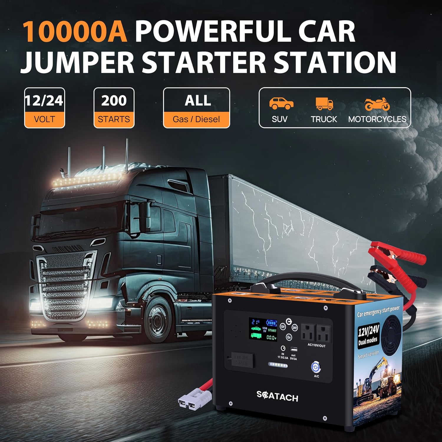 Scatach 10000A Jump Starter, 24V 400W Inverter Battery Jumper Starter Power Station for All Gas or Diesel Engines, 155Wh Heavy Duty Truck Jump Starters Portable Power Bank for Outdoors Camping Travel