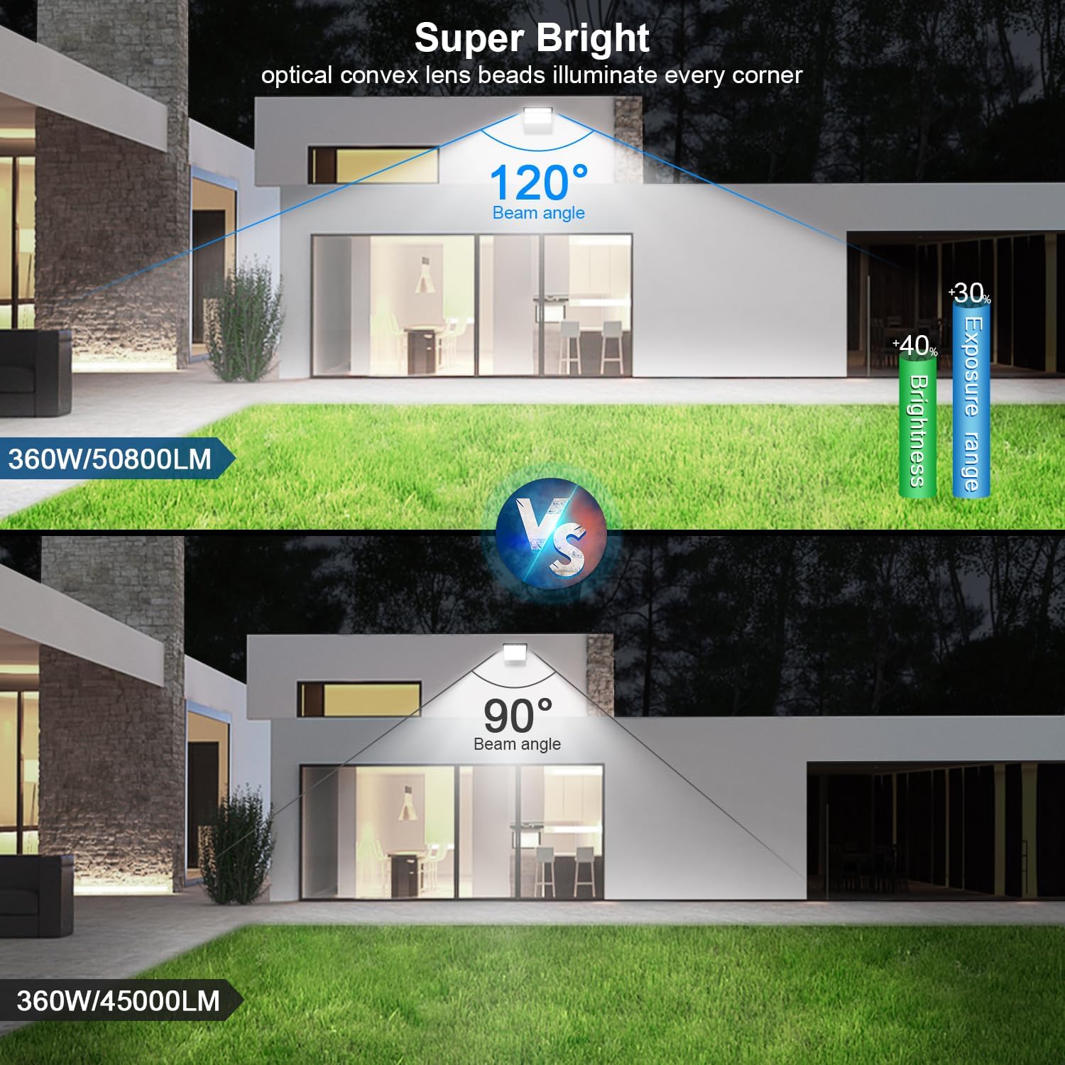 - Wide Lighting Design-The 360 watt outdoor stadium light for yard is equipped with ultra bright LED, using high-quality LED chips and professional optical design. With a 120° lighting beam angle, it ensures bright and efficient lighting for sports fields and large outdoor areas