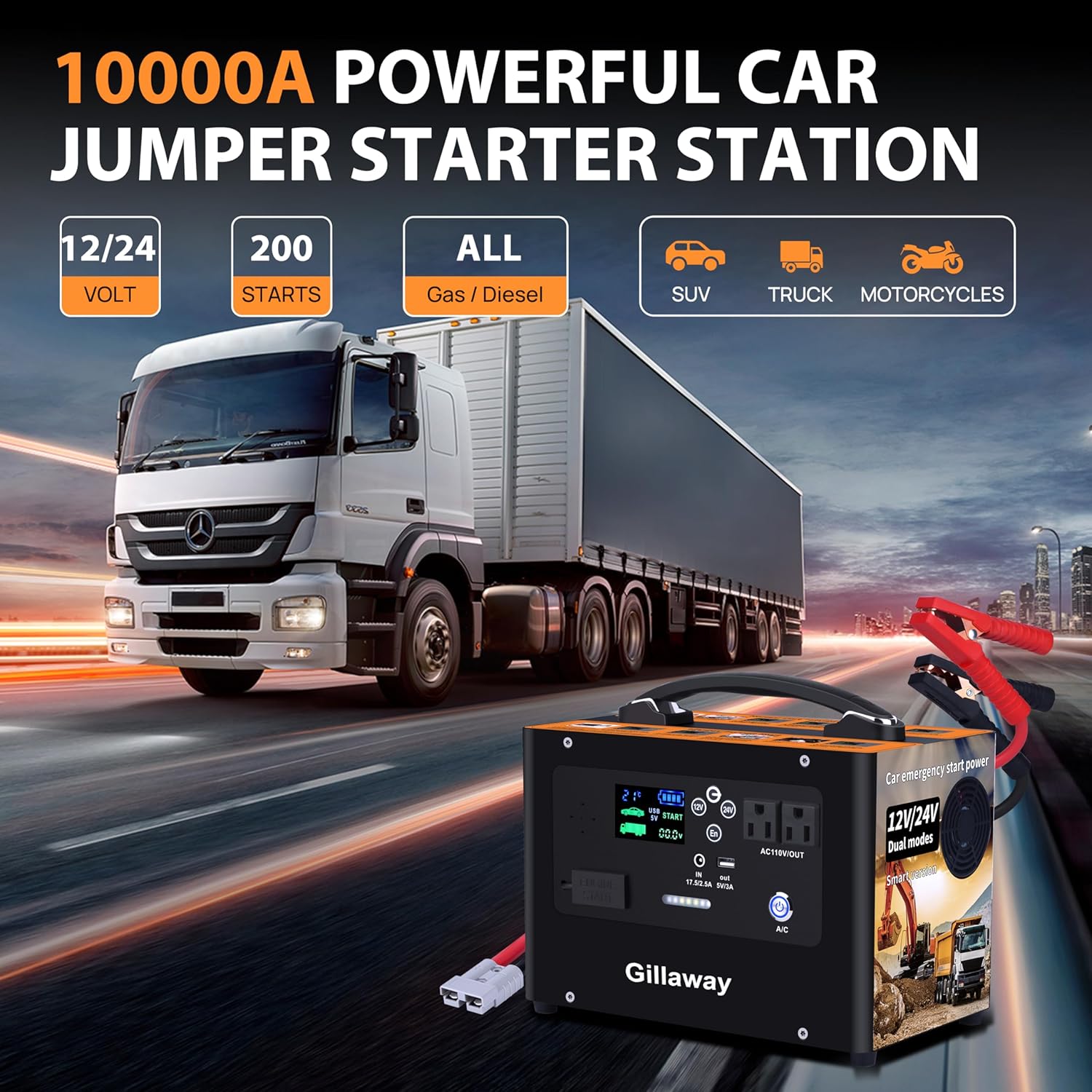 V10 10000A Car Jump Starter, Portable Power Station Backup Lithium Battery,12V/24V Heavy Duty Truck Jump Starter Battery Pack, Power Bank for Outdoors Camping Travel Hunting Blackout