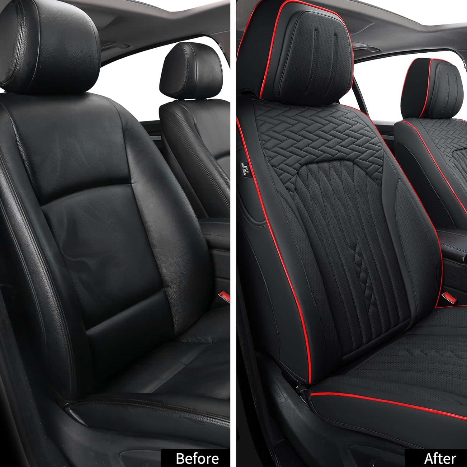 - ✨PREMIUM LOOK & FEEL:Elevate your car's interior instantly with sleek, high-quality faux leather in classic Black. The luxurious texture and tailored fit create a sophisticated, showroom-ready appearance that enhances any vehicle's aesthetic.