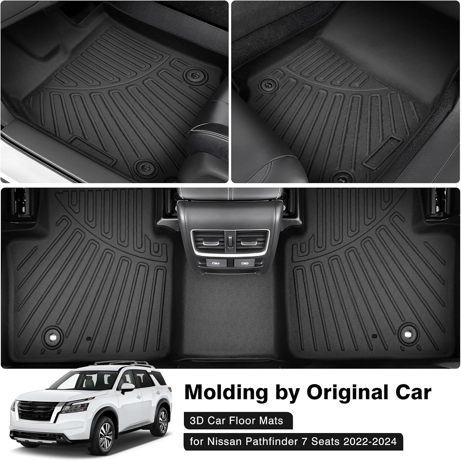 - 【Crafted for Pathfinder Exclusivity】Introducing premium floor mats, that seamlessly integrate with your Nissan Pathfinder 7 Seats 2022 2023 2024 2025 through precise 3D-scanned design, eliminating the need for trimming.