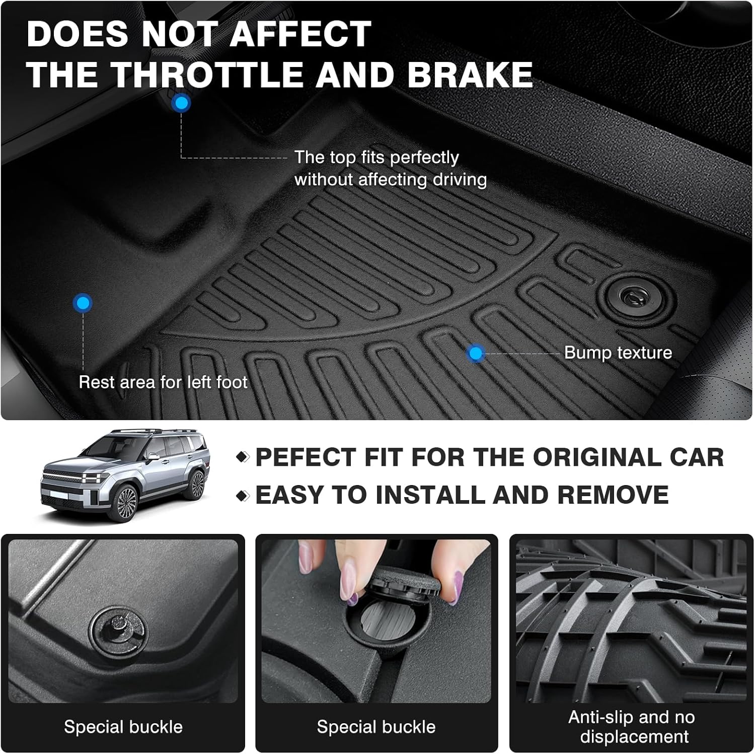 - 【Crafted for Santa Fe Exclusivity】 Introducing premium floor mats, that seamlessly integrate with your 2021 2022 2023 Hyundai Santa Fe 5 Seats(ONLY Hybrid) through precise 3D-scanned design, eliminating the need for trimming.