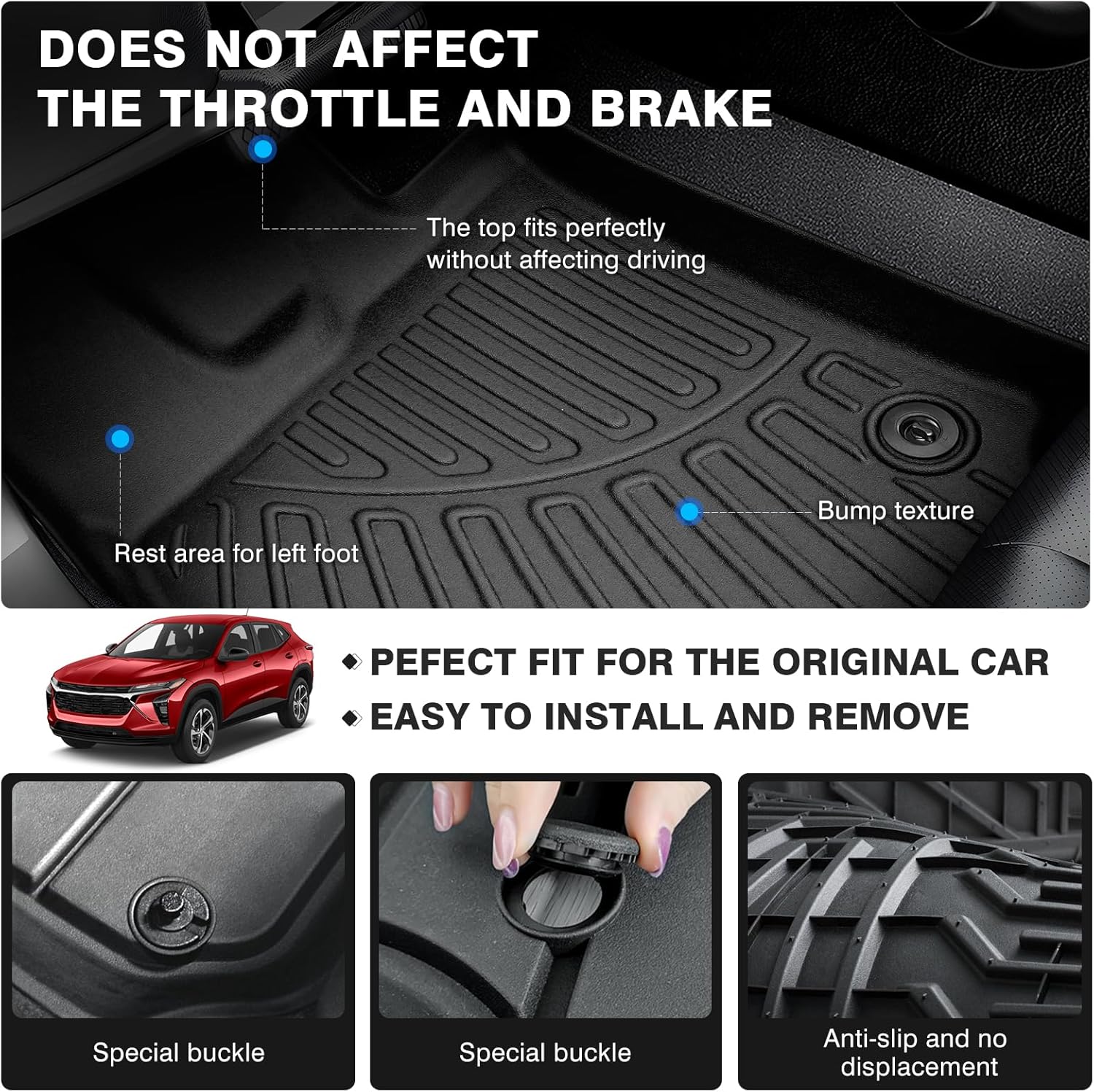 - 【Crafted for Trax Exclusivity】 Introducing premium floor mats, that seamlessly integrate with your Chevrolet/Chevy Trax 2024 2025 through precise 3D-scanned design, eliminating the need for trimming.