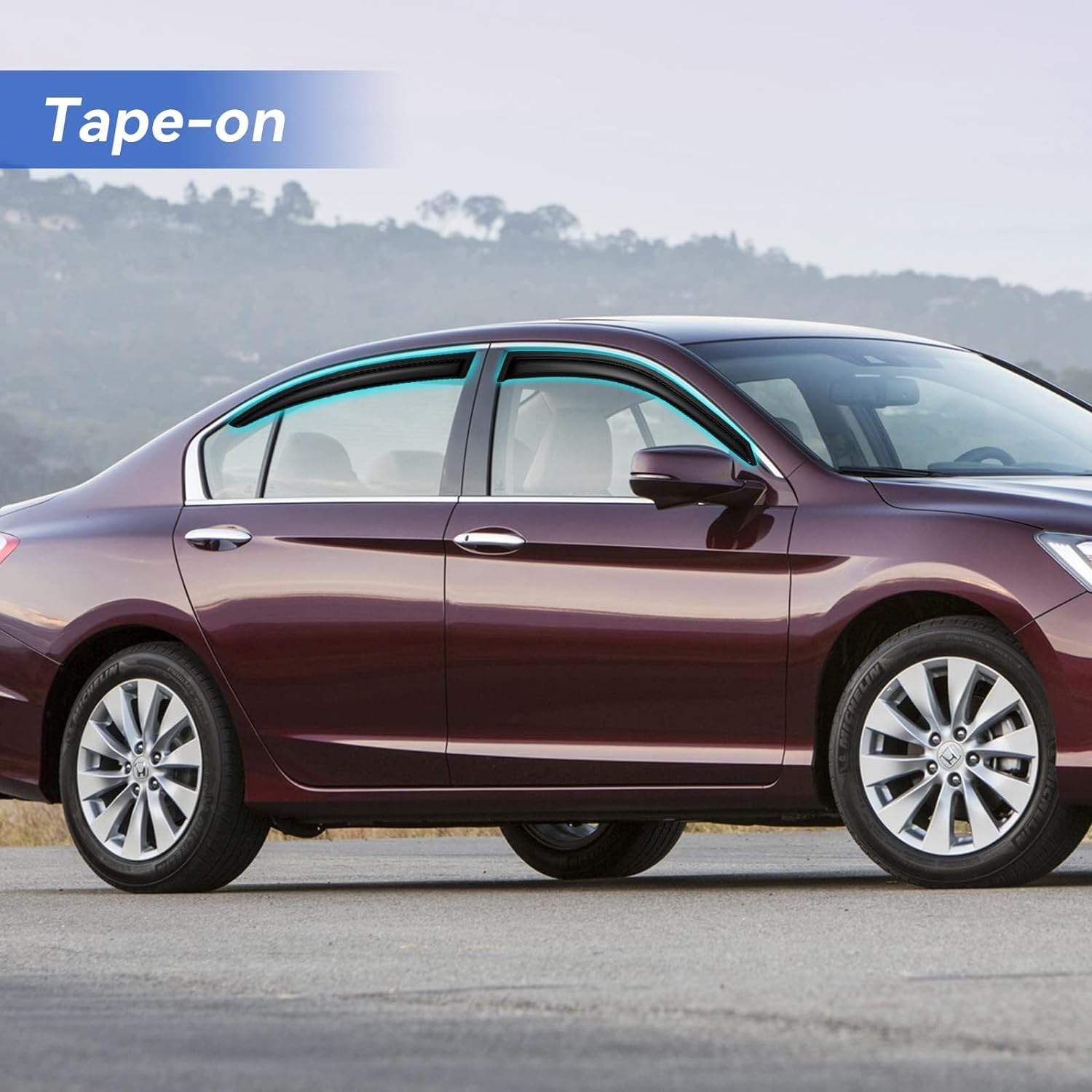 - 【Perfect Fit】YQAUTEC Window Visors Rain Guards Shield for 2008 2009 2010 2011 2012 2013 2014 2015 2016 2017 Honda Accord Sedan, Side Window Vent Wind Deflectors Visors Shades for 08 09 10 11 12 13 14 15 16 17 4PCS Honda Accord Tape-On.