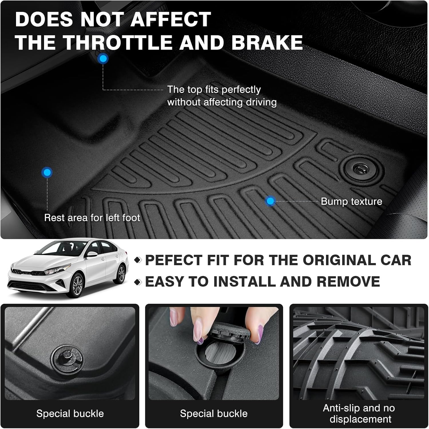 - Crafted for Forte Exclusivity: Introducing premium floor mats, that seamlessly integrate with your Kia Forte 2019 2020 2021 2022 2023 2024 through precise 3D-scanned design, eliminating the need for trimming.