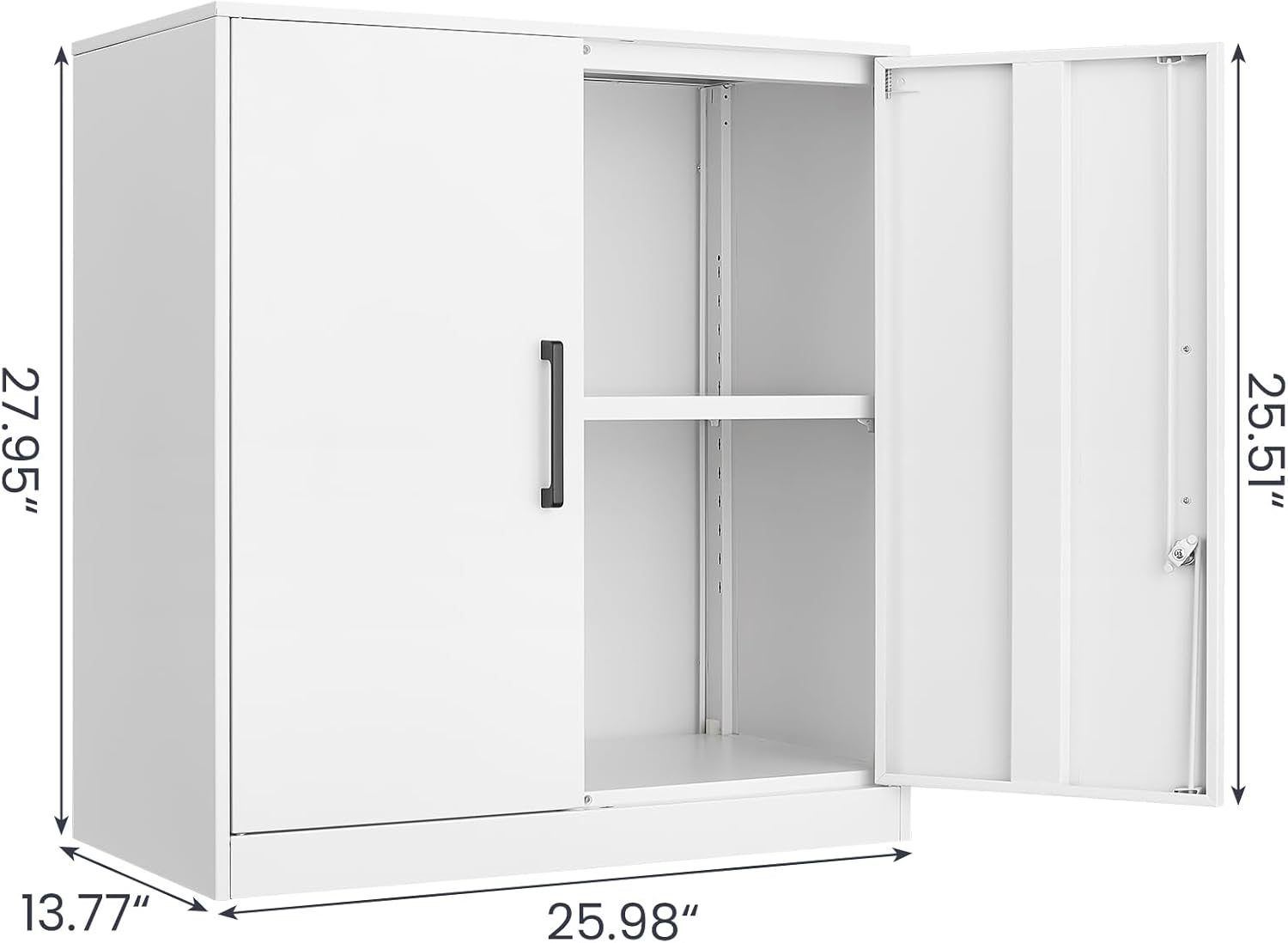 - 【Large Storage Space】This white wall cabinet dimension is 13.77"D x 25.98"W x 27.95"H,Weight:30.8 lbs,plenty space storing tools, files, dishes and more. It is suitable for home, office, garage, school, store and warehouse, especially for kitchen and garage use.