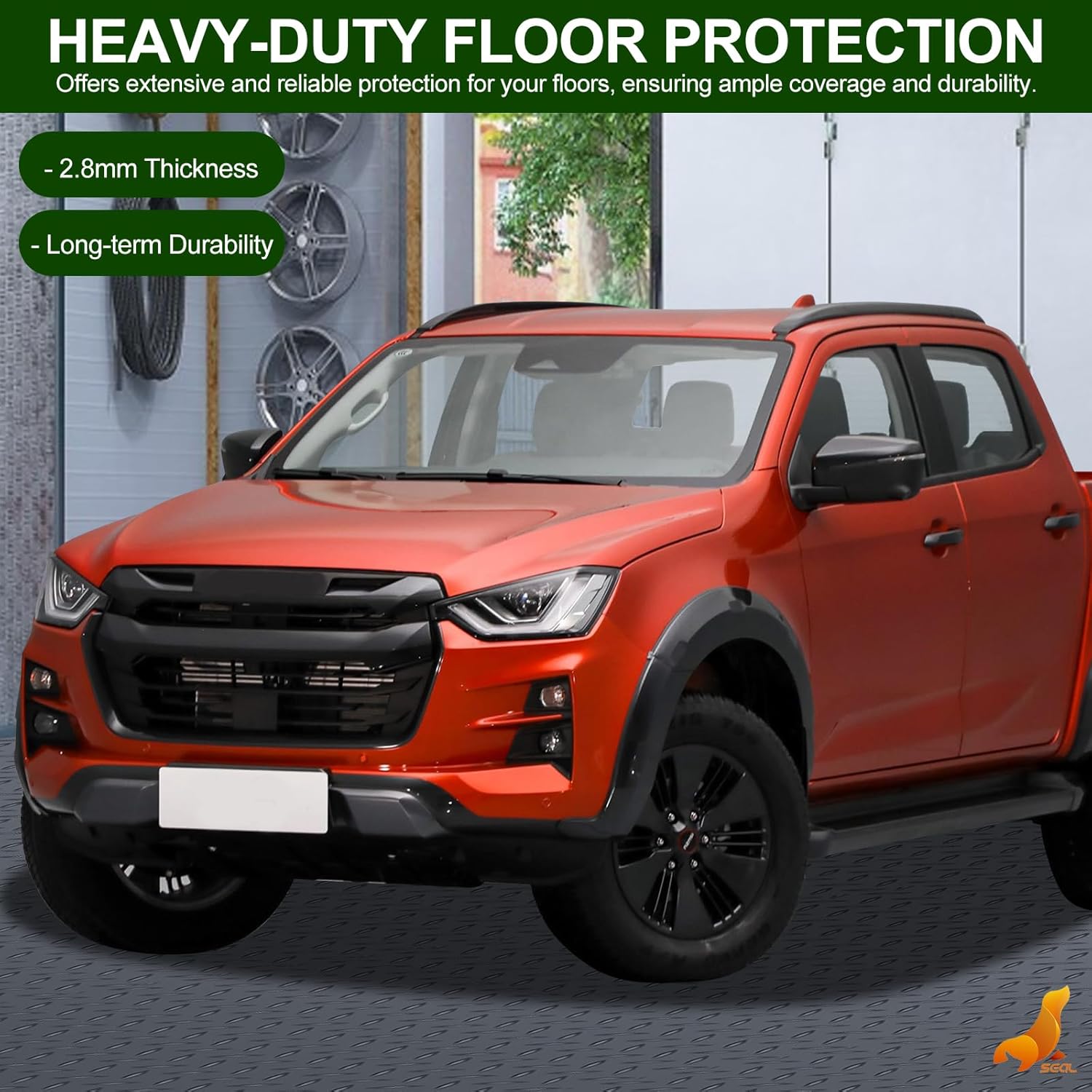 - [TOP-QUALITY GARAGE FLOOR MATS BY SEAL] - Discover the best protection for your garage with SEAL’s garage floor mats. Made from high-quality PVC, these mats are tough enough to handle cars driving over and people walking on them every day, without smelling bad or losing their shape. Plus, they’re totally safe, with no harmful materials.