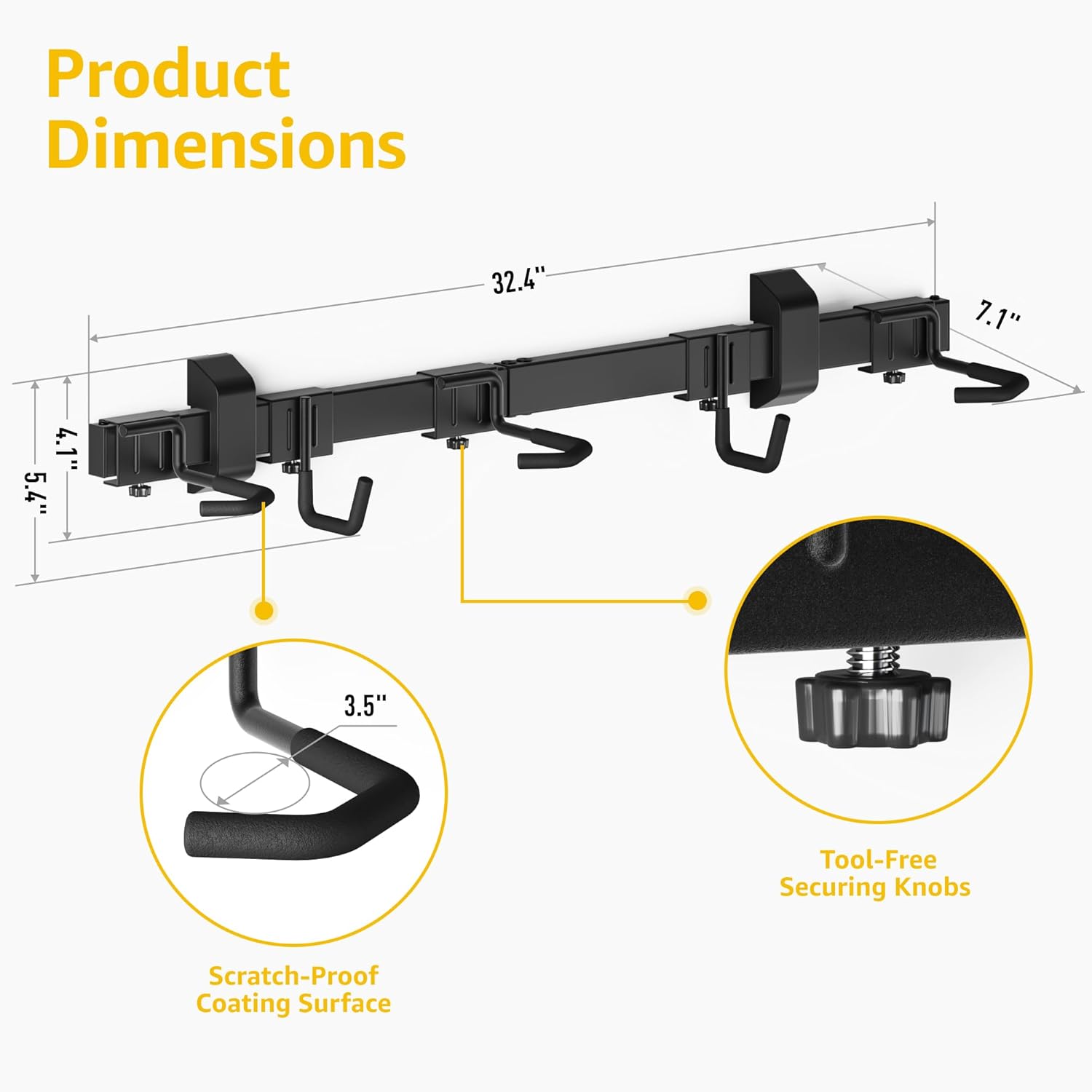 - 【UPGRADED J-HOOK DESIGN】The J-Hook perfectly conforms to the curvature of the bicycle hub, providing a solid grip thus firmly securing the bike in the correct position. Each bike hook is installed securely and won't come off when hanging the bike. The rubber-coated bike rack reduces torque on the rim and spokes. The wide-sized hooks make hanging and taking off the bike a breeze.