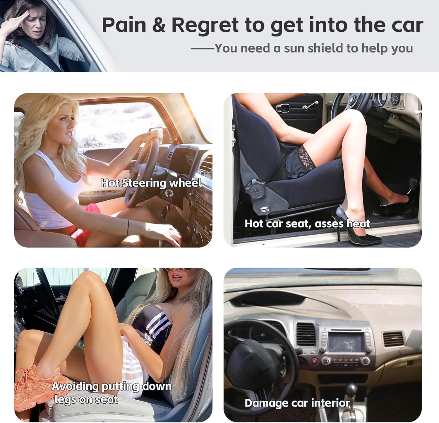 - 【The latest upgrade】The sunshade is made of 240T fabric with a thicker density, Nano coating, 4 anti-UV layers, and better reduce of the heat and UV rays.Double D-shaped steel ring design, So useful is the sunshade that allows you to enter the car easily.