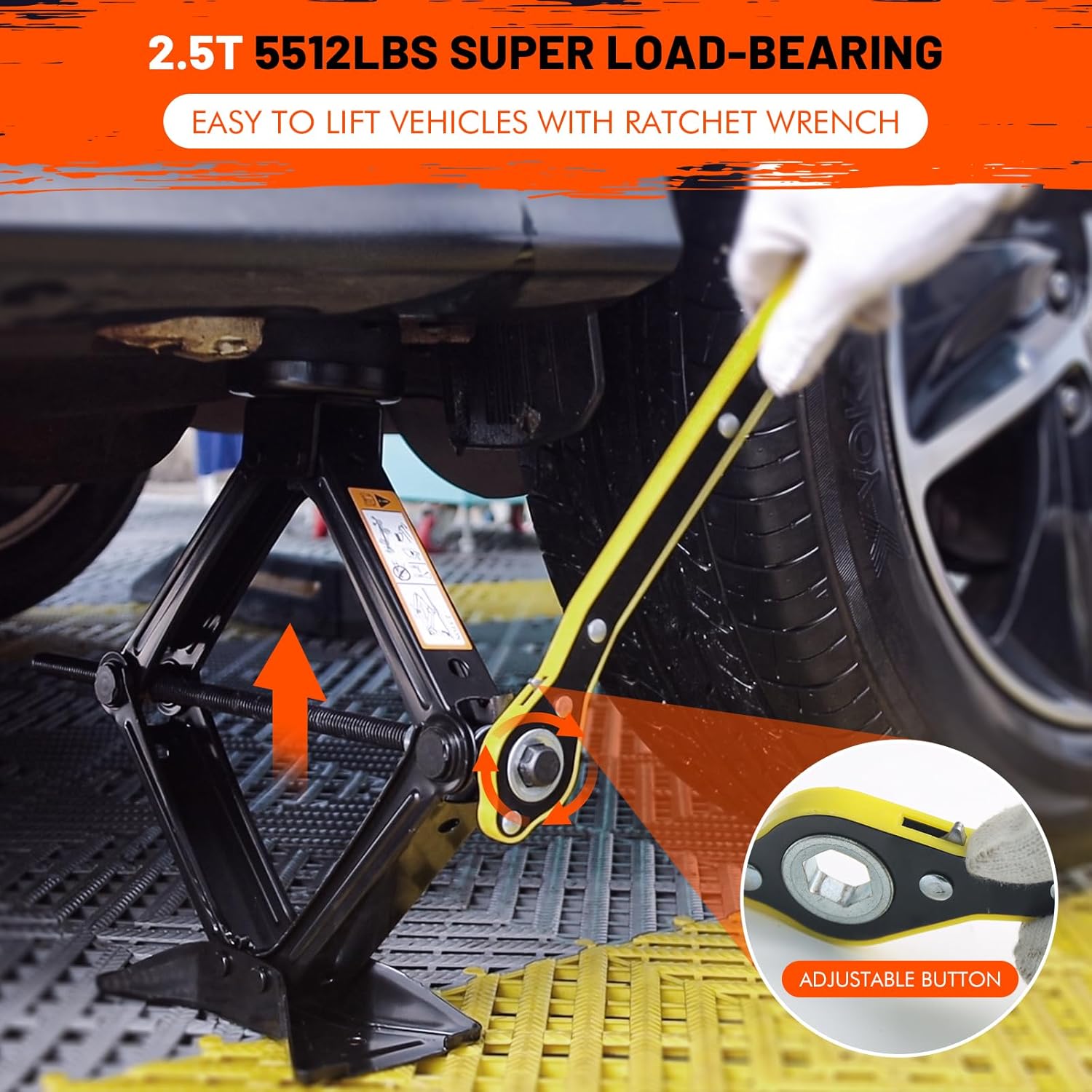 IMAYCC Car Jack 2.5 Ton/5512 lbs Universal Scissor Jack With Rubber Pad, Portable Tire Changing Kit With Lug Wrench, Emergency Kit for Sedan SUV MPV
