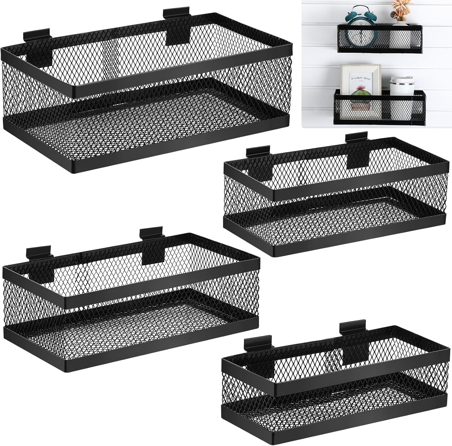 - Nice Organization Tool: designed for organization, these slatwall panel baskets in 4 sizes provide different solutions for various items storage; They are easy to install, can hold a decent weight, and consequently, they offer an efficient organization system; The baskets' durable and sturdy construction, coupled with their artistic craftsmanship, ensures that they do not deform easily, fit for home, office, shops, and stores alike