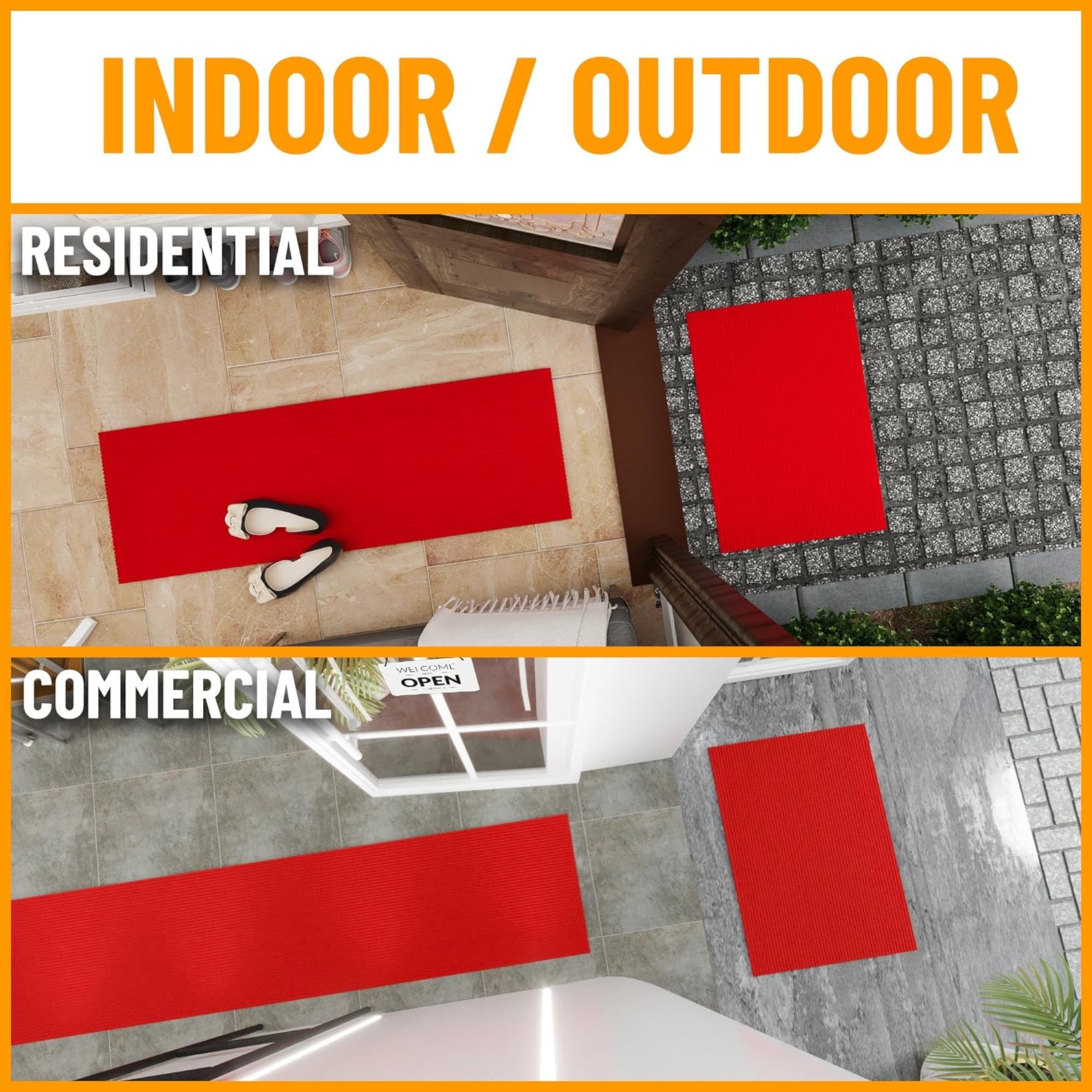 Ottomanson 2'7" x 12' Hallway Runner with Scraper Pile Extra Durable Non-Slip Rug Mat for Indoor & Outdoor Use - Ideal for Kitchen, Entryway, Patio & Garage - High-Traffic Carpet, Red