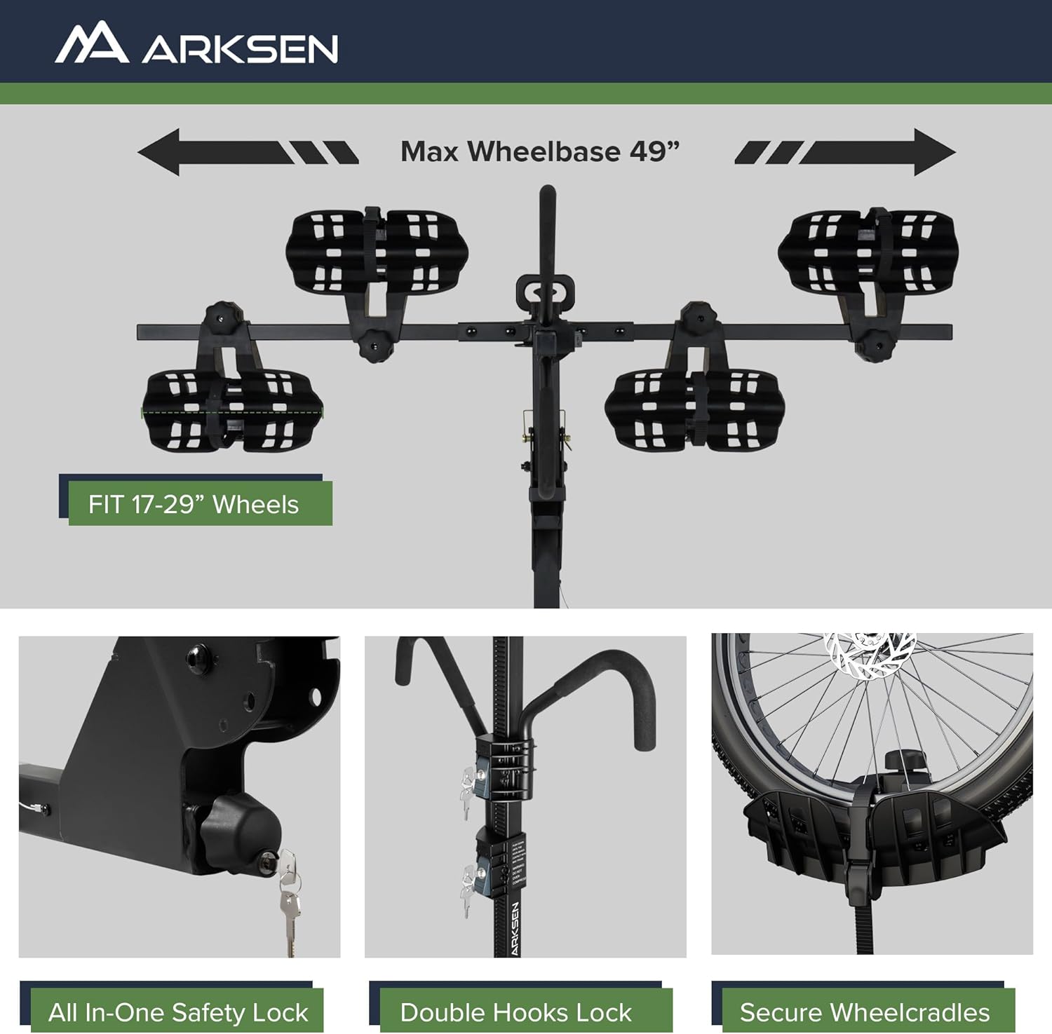 - [Fully Secure] - This hitch bike rack ensures complete security with a safety lock and key, complemented by an anti-wobble mechanism for rock-solid stability. Your electric bike is securely fastened with anti-scratch PVC foam padded hooks featuring theft-resistant locks that twist firmly into place. Tire straps prevent wheels from spinning, and included reflective stickers enhance visibility.
