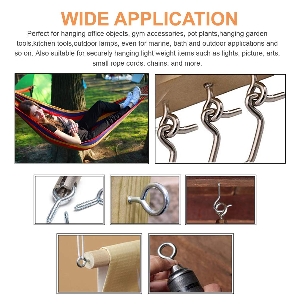 6-Pack 304 Stainless Steel Screw Eyes 3.2", Heavy Duty Screw in Eye Hooks Ring for Yoga, Swing Chair, Indoor & Outdoor, Self Tapping
