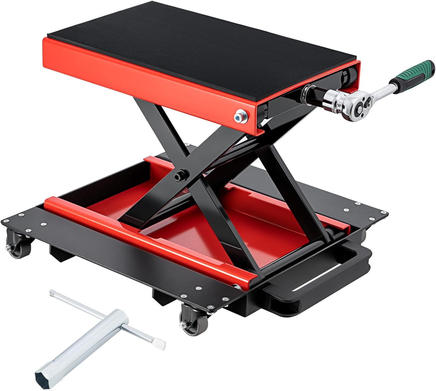 CXRCY1200 LBS Motorcycle Jack with Dolly, Motorcycle Lift Scissor Jack Upgraded Dirt Bike ATV Steel Motorcycle Hoist Stand with Ratchet Wrench,Crank Handle,Thickened Rubber Pad,Wide Deck