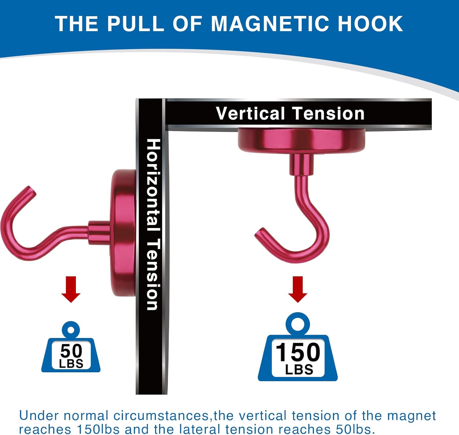 LOVIMAG Cruise Essentials, 150Lbs Cruise Door Magnets, Red Magnet Hooks for Cruise Cabin Strong Magnetic Hooks for Hanging, Refrigerator, Celling -6 Pack