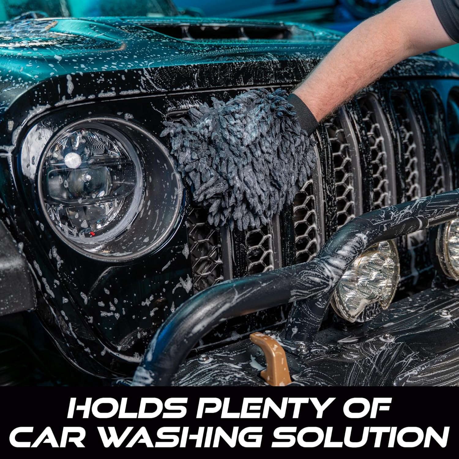 - Pack of 2 scratch free microfiber wash mitt measuring 10 inches long and 8 inches wide