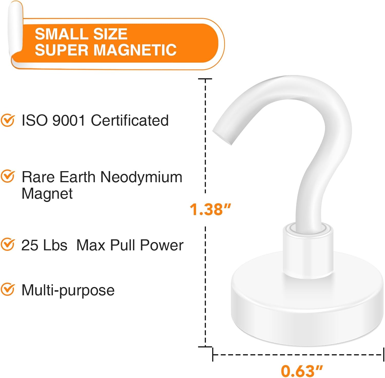 - 【Excellent Layer Coating】- Our metal magnetic hooks come with an excellent triple-layer coating of Ni+Cu+Ni, which greatly reinforces their corrosion resistance. This coating is the best available, providing a shiny and rust-resistant surface that helps prevent chipping or cracking. The coated steel cup also provides protection for the heavy duty magnetic refrigerator hooks. With this excellent layer coating, you can trust that our magnetic hanging hooks are safe to use and will last a long time.