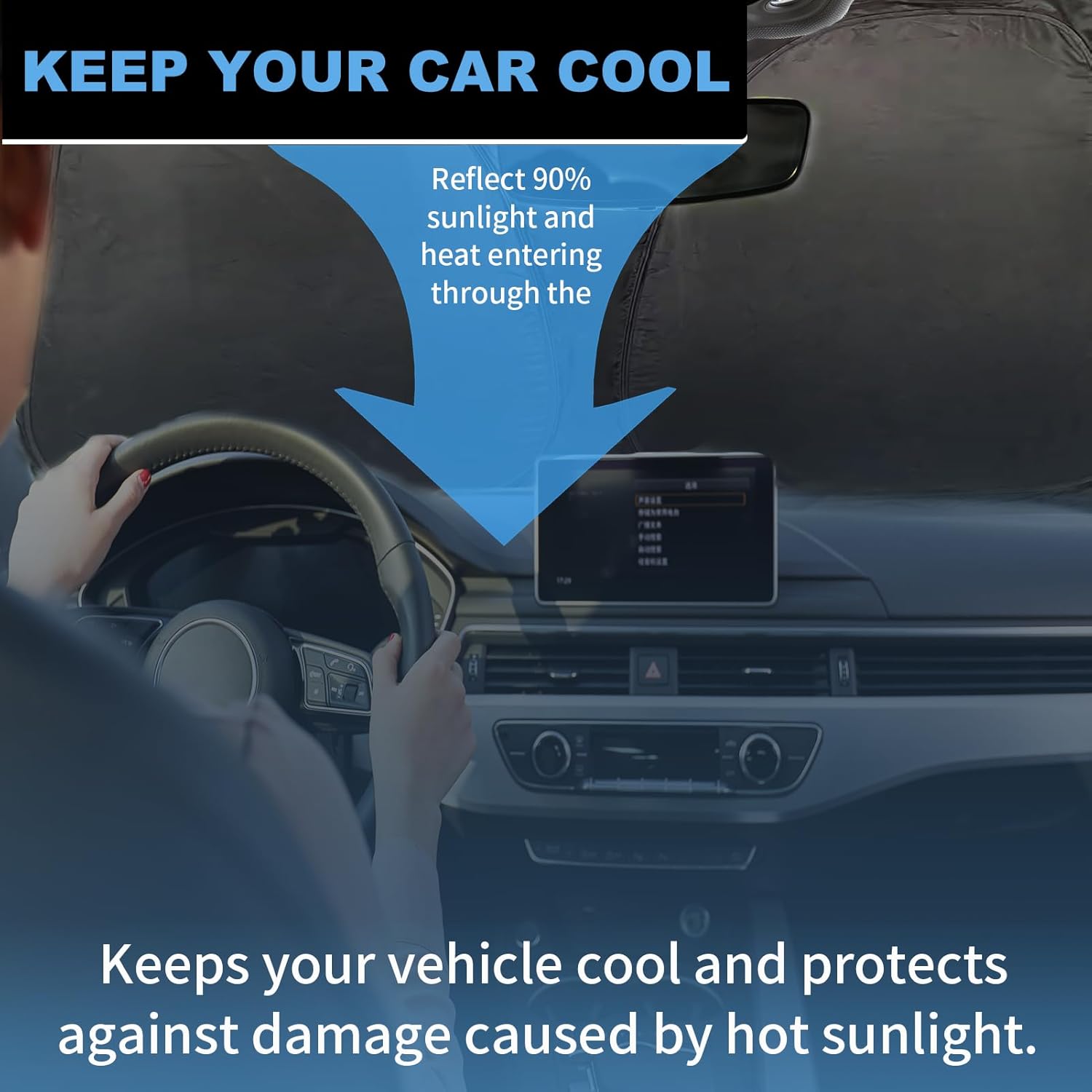 - 【Premium Quality reflective polyester material】Function: Enhanced reflective layer and 240T polyester fabric, more reflective, very good to reduce UV and heat, but also to protect the interior of the car (such as dashboard, navigation screen, steering wheel and seats, etc.),can effectively block sunlight and ultraviolet rays, and the sun visor offers maximum protection and coverage.