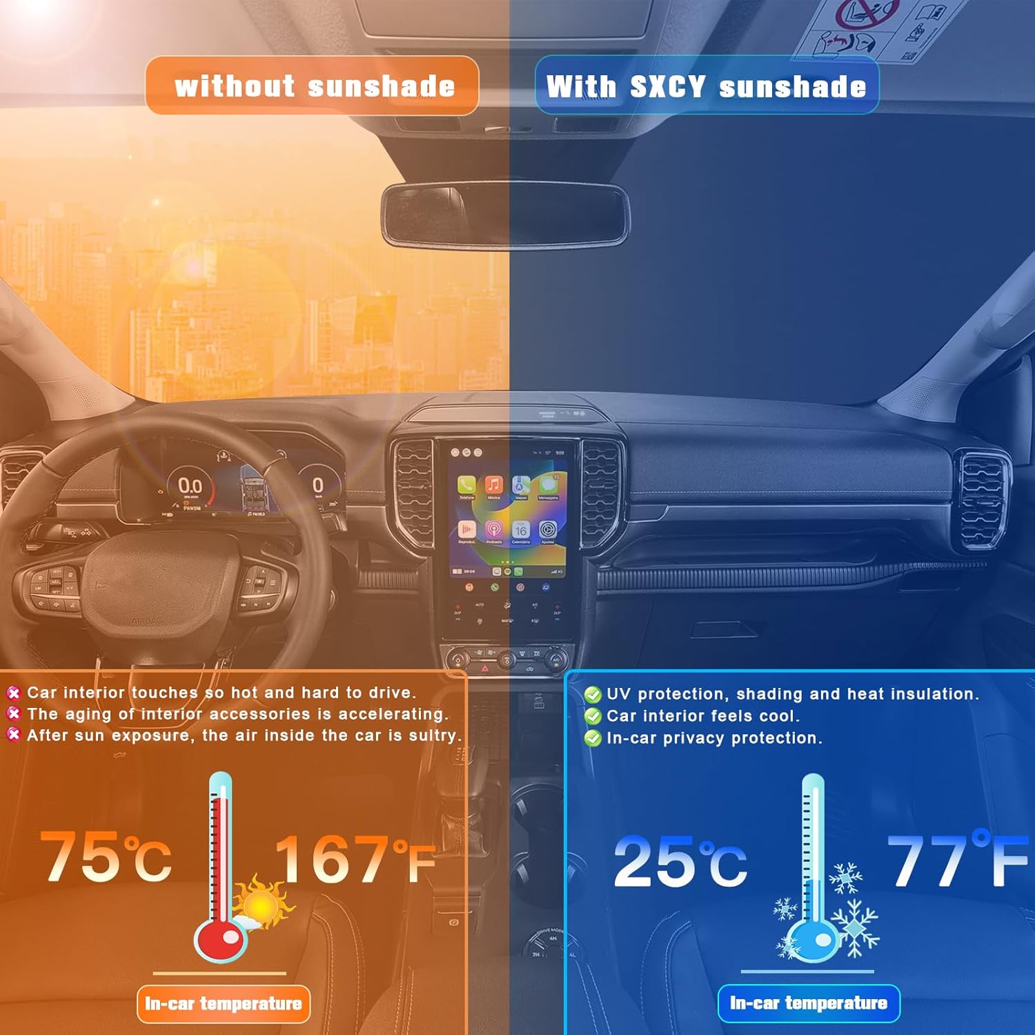 SXCY for 2024 2025 Ford Ranger Windshield Sunshade for 2024 2025 Ranger XL/XLT/Lariat/Raptor Accessories 2024 2025 Ford Ranger Sun Shade Foldable Sun Shield 2024 2025 Ranger Sun Protector Block UV Ray