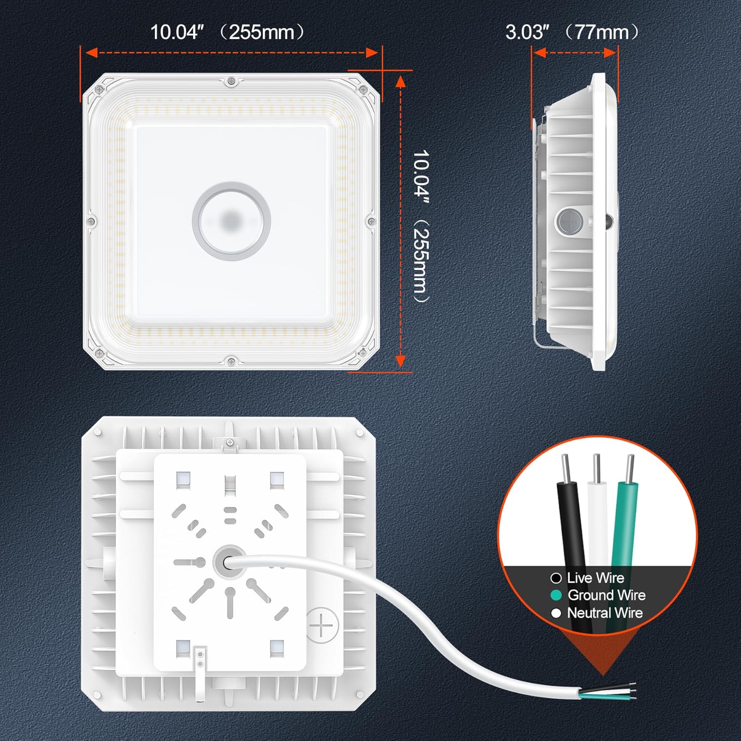 - 【IP65 Waterproof 】 IP65 waterproof and can work at temperatures ranging from -34°C to 54°C (-30°F to 130°F). This outdoor canopy lights ensures durability and longevity with a lifespan of over 50,000 hours. The light can operate under a current of AC100-277V