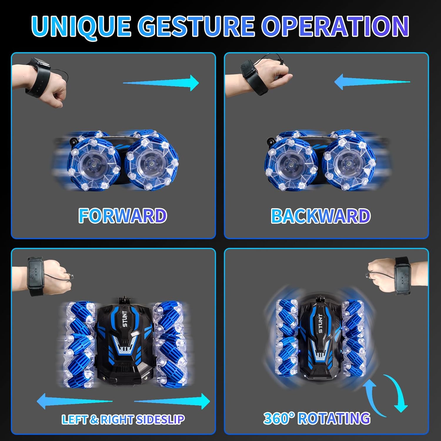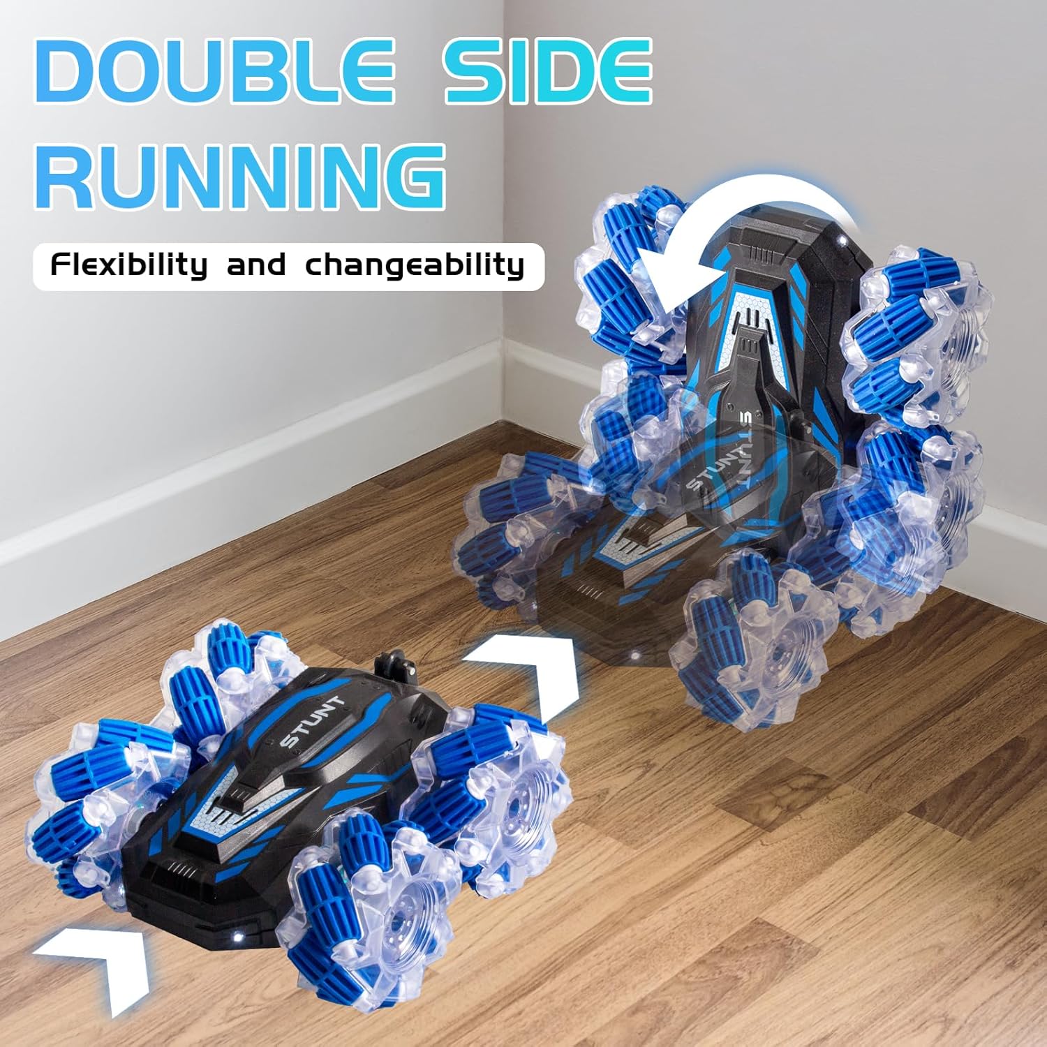 Remote Control Car, 2.4 Ghz 4WD Gesture Sensing RC Stunt Car, Double Sided 360° flip, with Cool Lights and Music, Birthday Present Toys Car for Boys SND Girls Aged 5-12 (Blue)