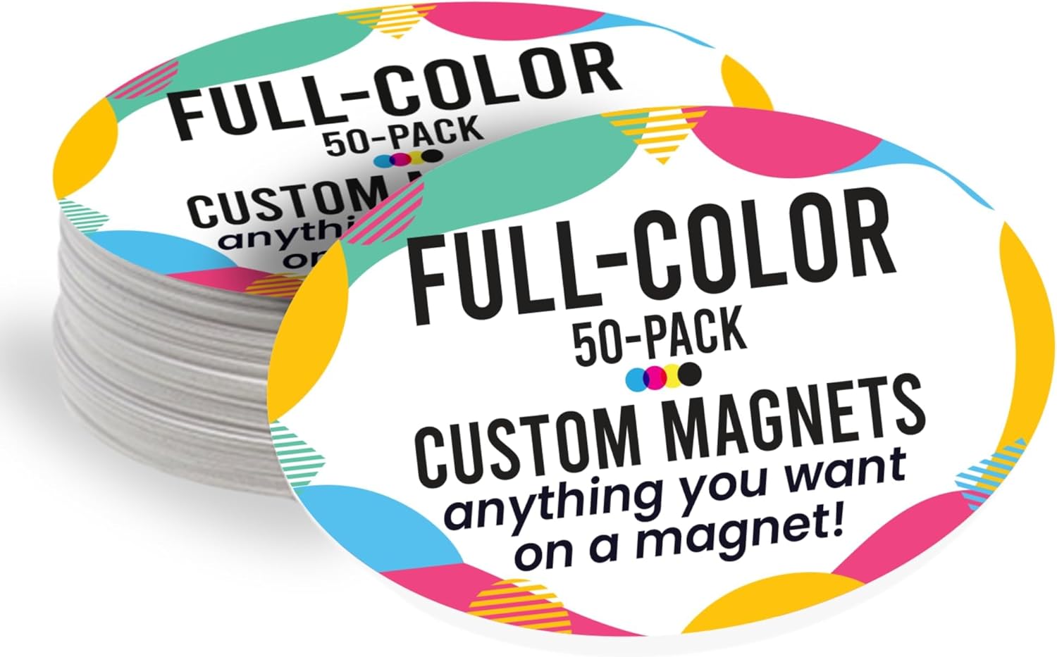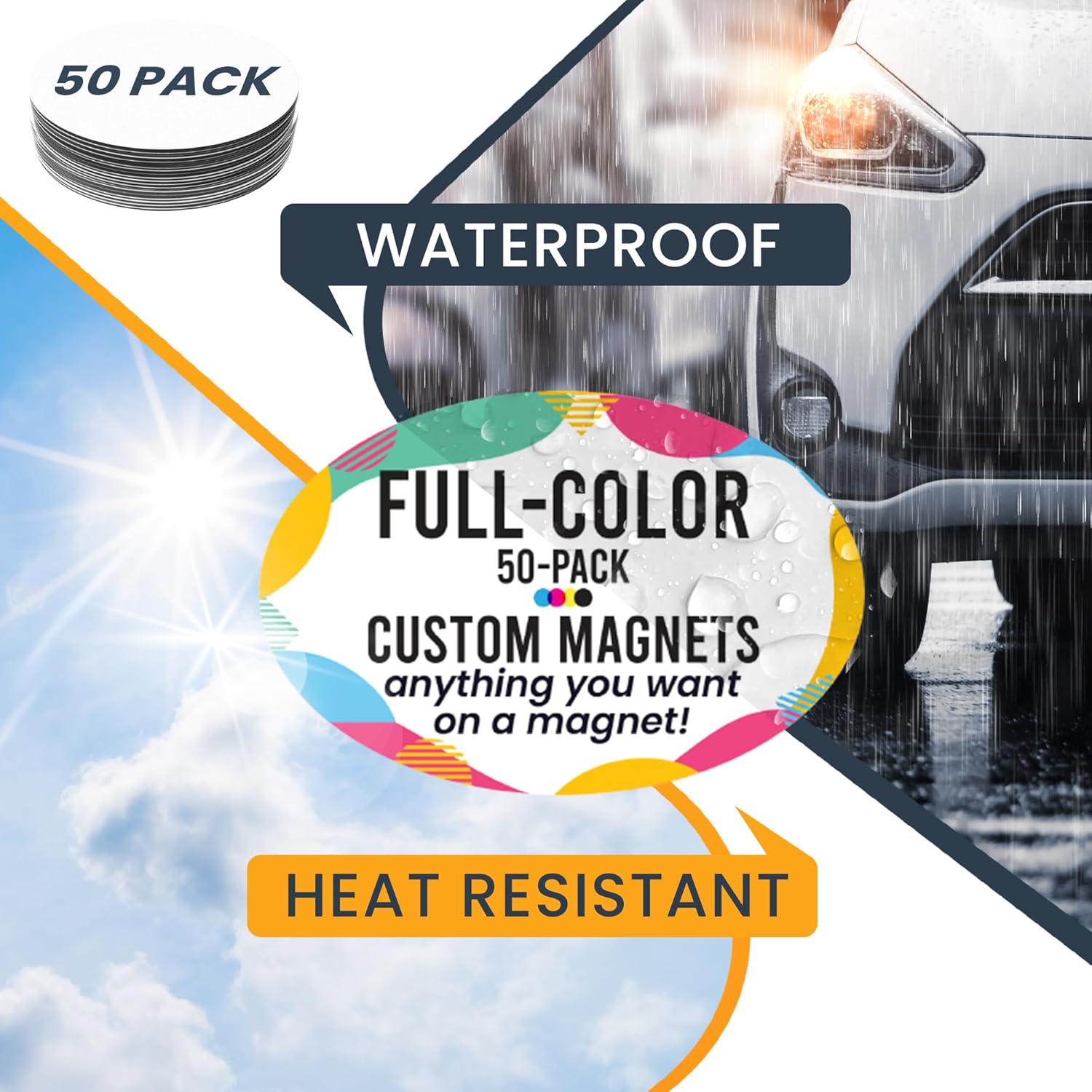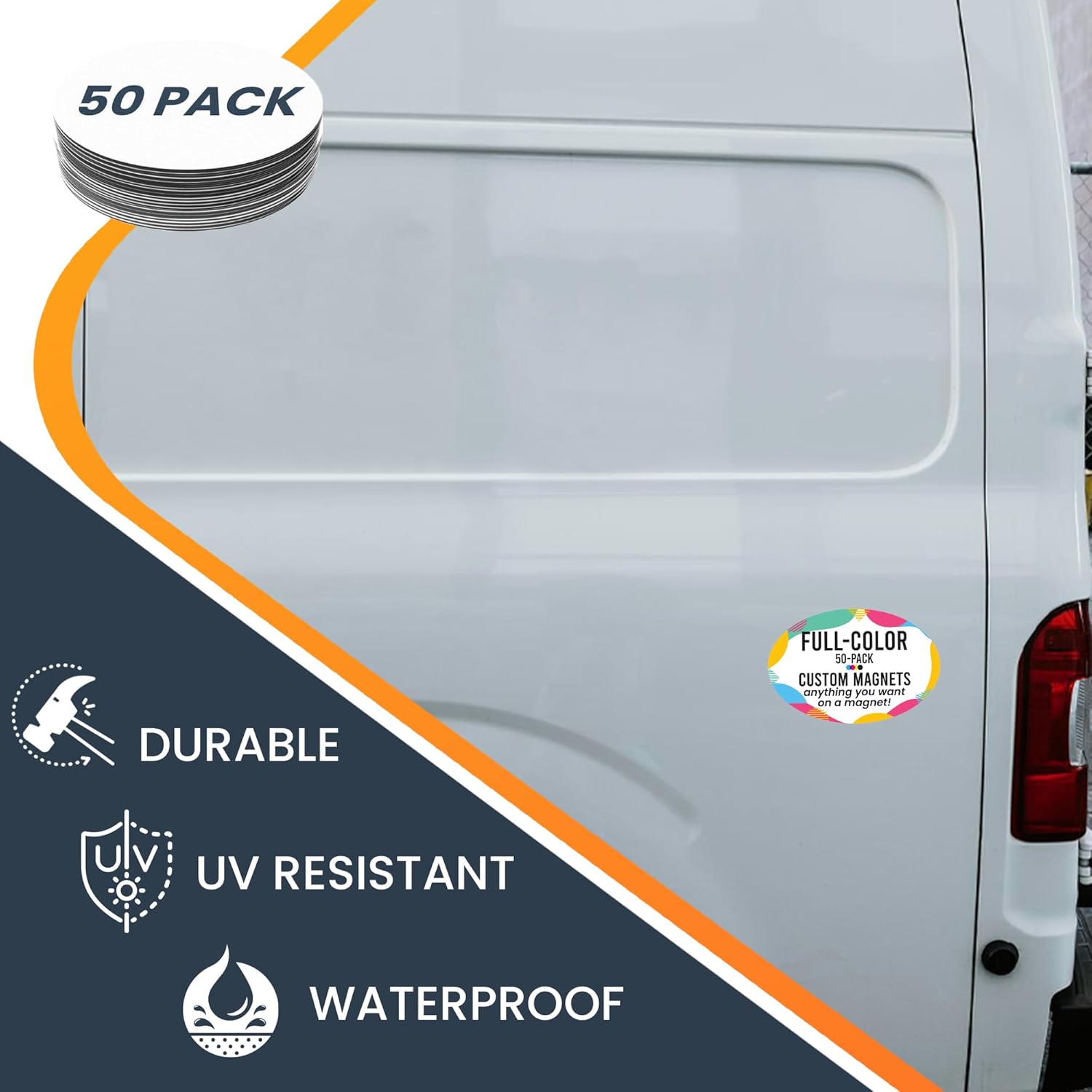 Magnet Me Up Custom 4x6 Inch Oval Magnet, 50 Pack, Customizable for Businesses, Personal Use, Choose Your Text, Upload Image, Magnetic Vinyl for Vehicles and Any Magnetic Surface, Crafted in USA