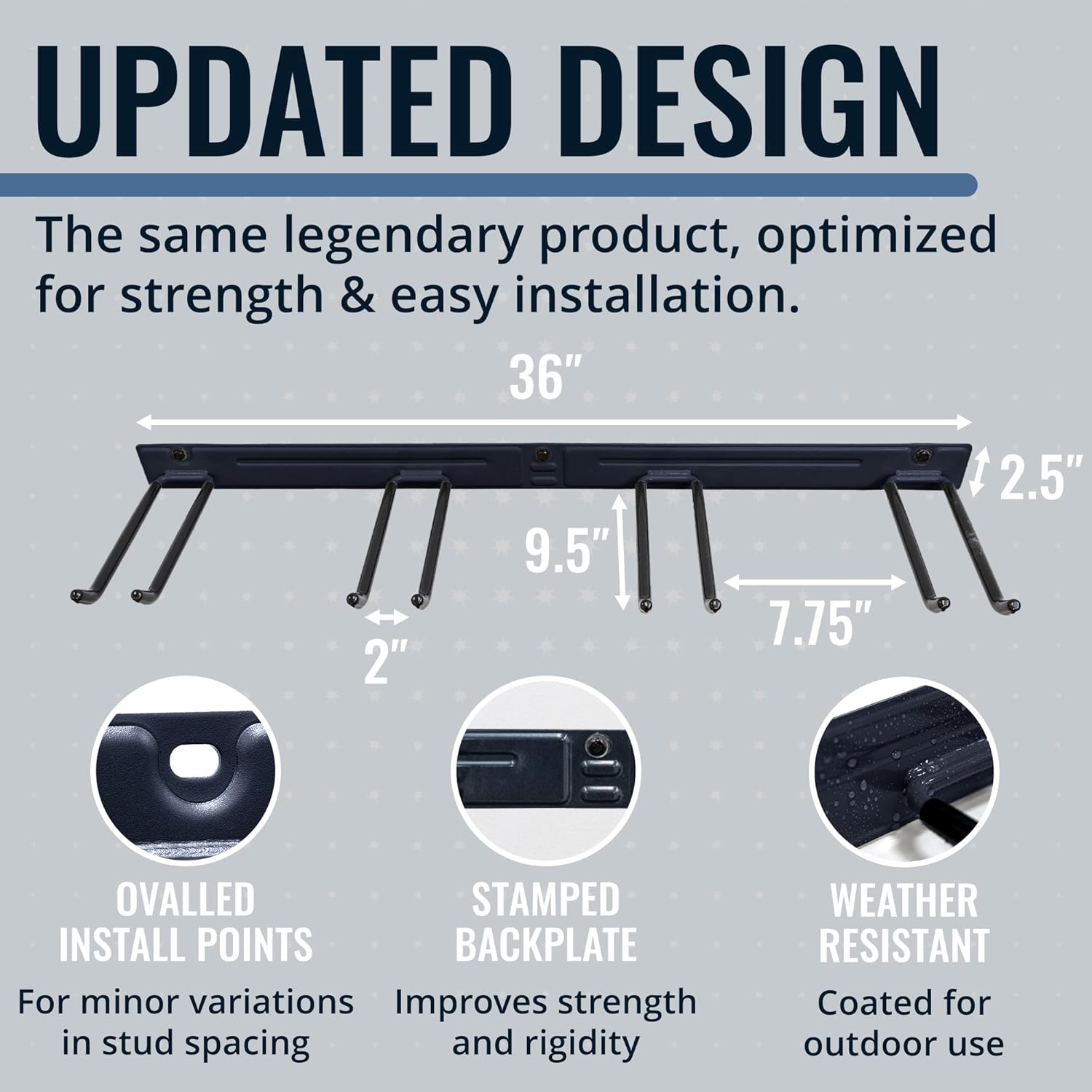 - QUICK & SECURE INSTALLATION – Each garage hook rack includes upgraded hardware with superior tensile strength and a protective electrophoresis coating. Oval mounting holes allow flexibility in stud spacing, and the all-in-one design means no assembly—just mount and get organizing. Ideal for garage organization or home improvement projects.
