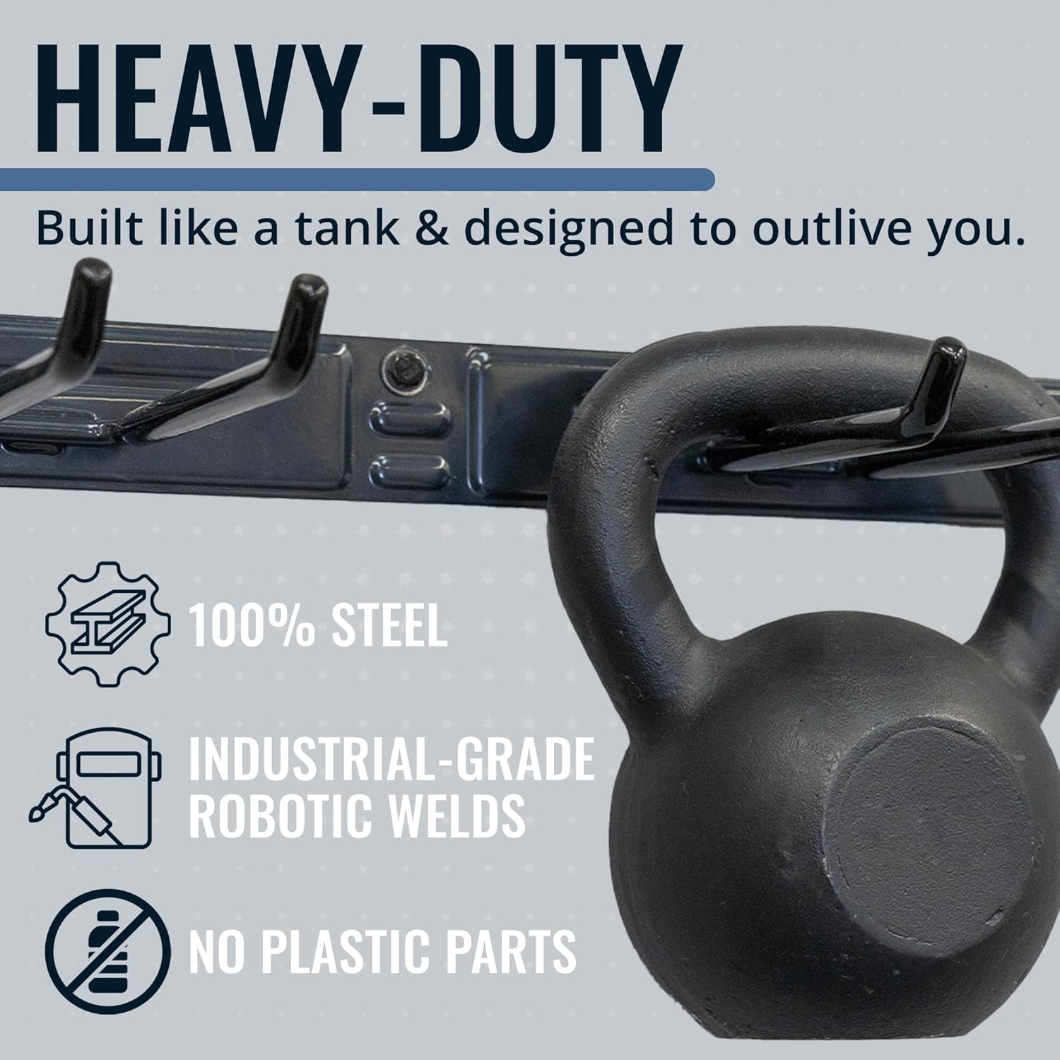 - ULTRA-STRONG & BUILT TO LAST – Made from 100% solid steel with no plastic parts or assembly required, this tool rack is crafted to withstand heavy-duty use. Each wall-mounted storage rack arrives fully welded and powder-coated to resist rust and corrosion. Perfect for organizing tools, outdoor storage gear, or even a fishing pole rack for the garage.