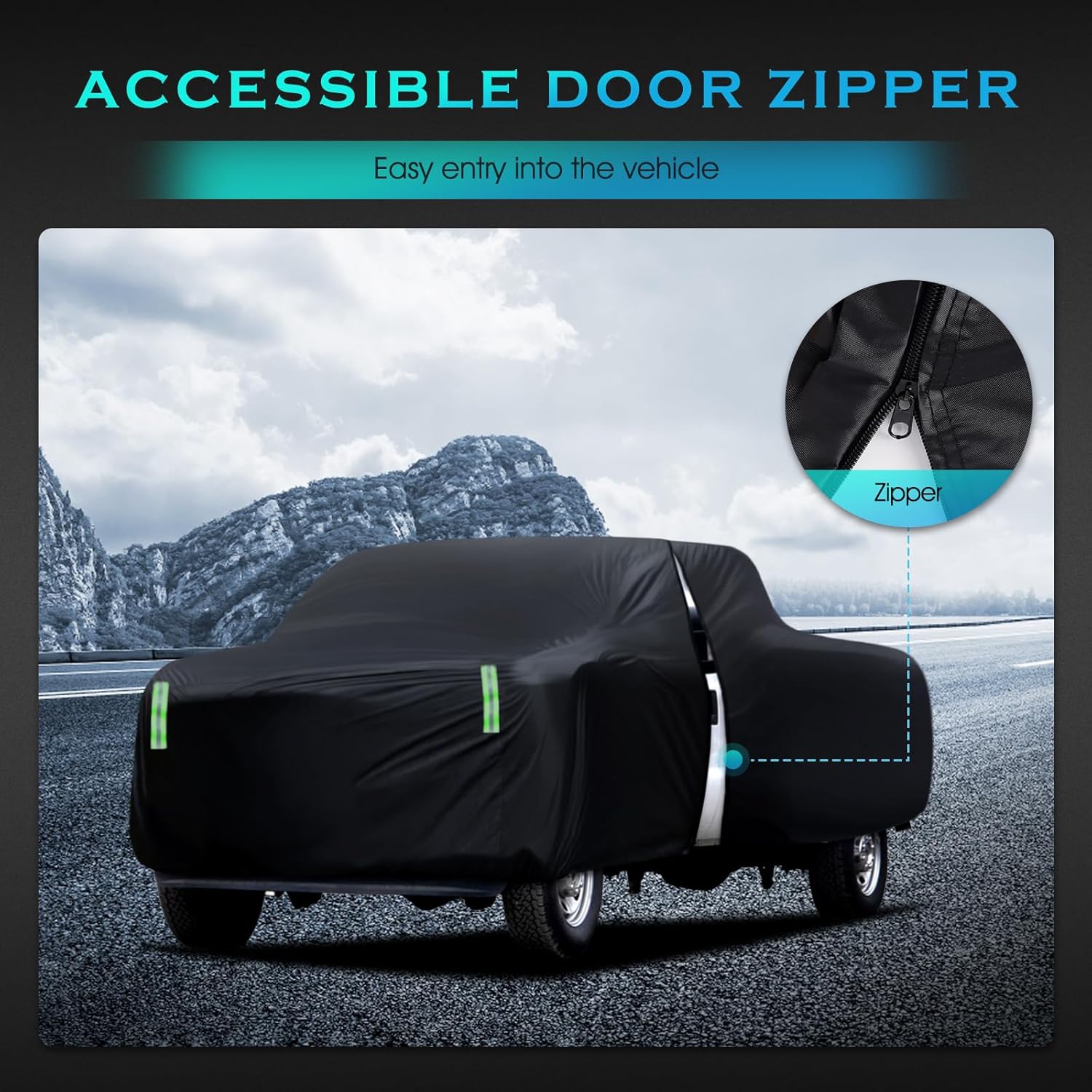 - 【Professional Design 】: The zipper design of the driver's door makes it convenient for you to enter and exit the car; The front and rear elastic hem makes the car cover more snug, with four tire windbreaks and a long strap in the middle with a quick release clip to protect your car cover from strong winds.