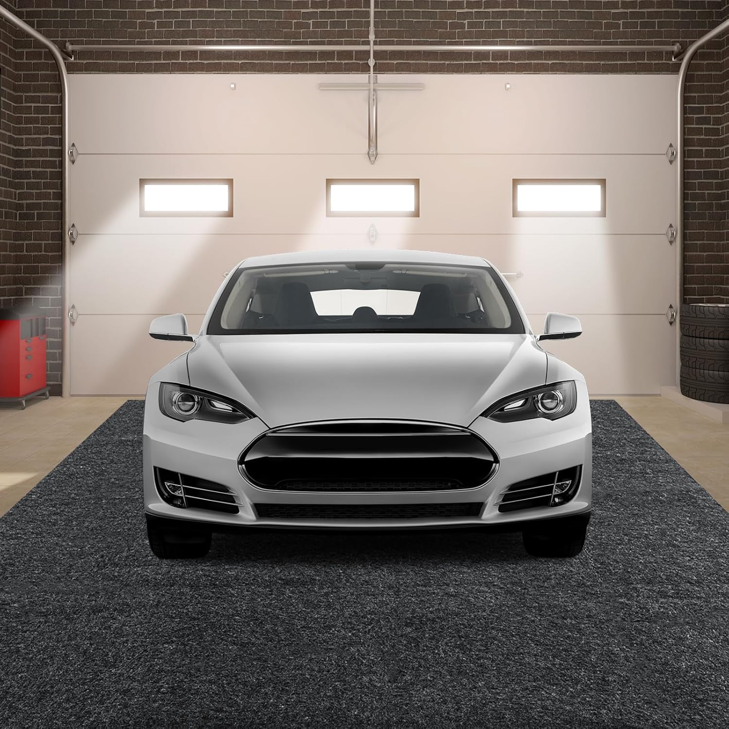 - 【QUICK INSTALLATION】:Light weight,easy to move,and foldable. When you need to use it, just slowly open the mats in the garage and spread it on the floor,the bottom of the grid is facing down and the felt side is facing up. If you want to make the garage mat more stable, you can stick double-sided adhesive on the edge of the mat (double-sided tape is not included).