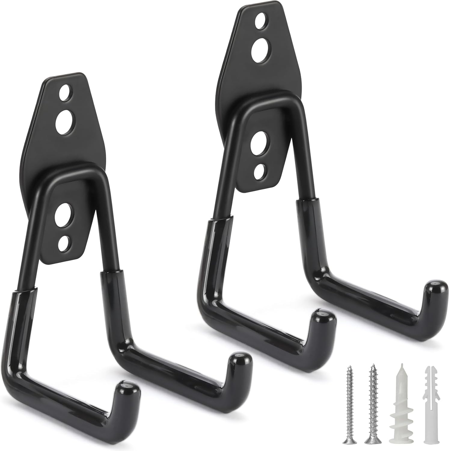 2 Pack Heavy Duty Garage Hooks Storage Organizer Wall Mount Power and Garden Tool Hangers, for Hanging Ladders, Ropes, Hose, Bulk Items