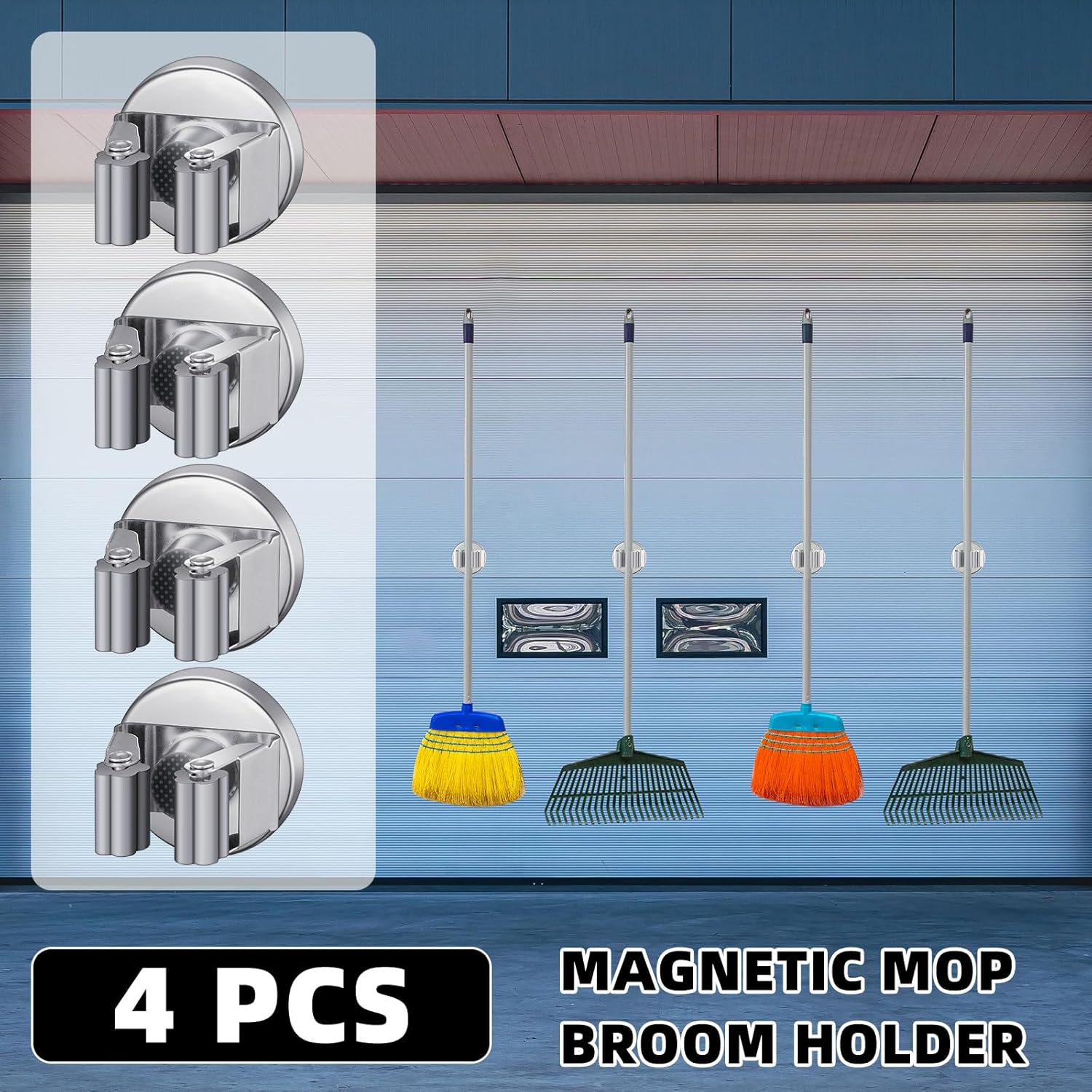 - Vercraft 4 Pcs Magnetic Mop Broom Holder Movable Magnetic Broom Holder Rack, Magnetic Holder Anti Slip Wall Mounted Utility for Cleaning Tools, Garage, Kitchen, Laundry, Garden (Silver)