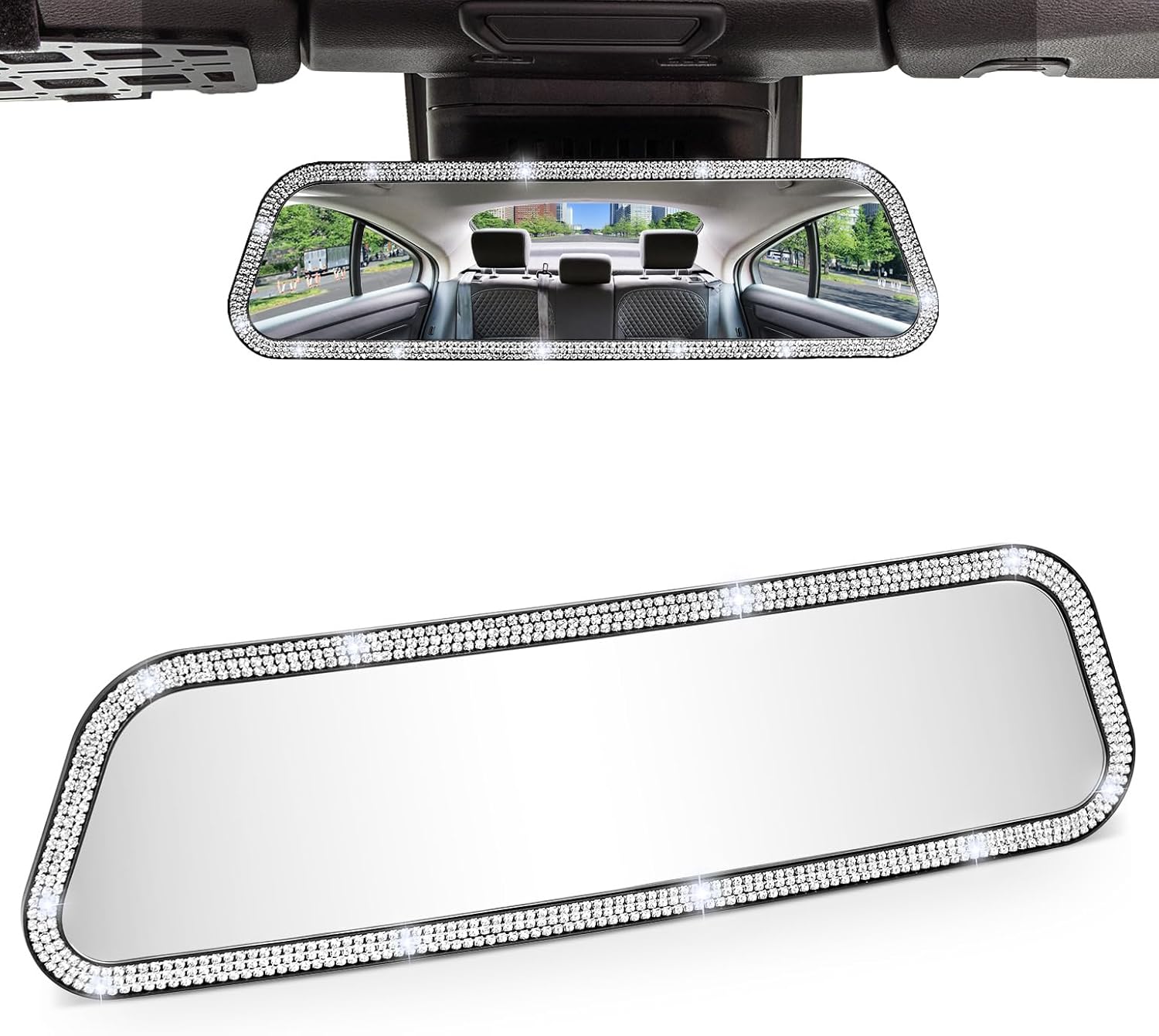 - MODERN FASHION DESIGN: The edges of the rearview mirror are decorated with bling rhinestones, it is shining in the light, showing a high-grade and fashionable car interior. Especially suitable for women it, would add color to the interior of your love car and make driving fun