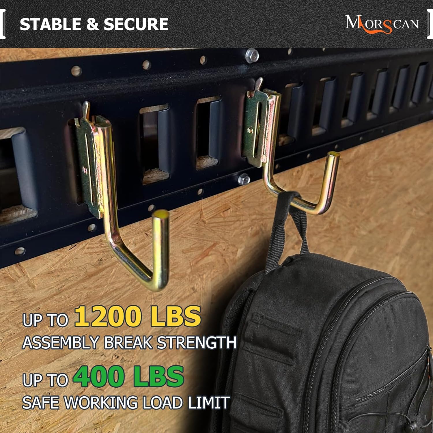- HEAVY DUTY HOOKS - Strong hooks fit for all E Track/X Track trailer tie-down rails or E port single slots. With 2" inner clearance, 400 pound working load limit, 1,200 pound break strength.